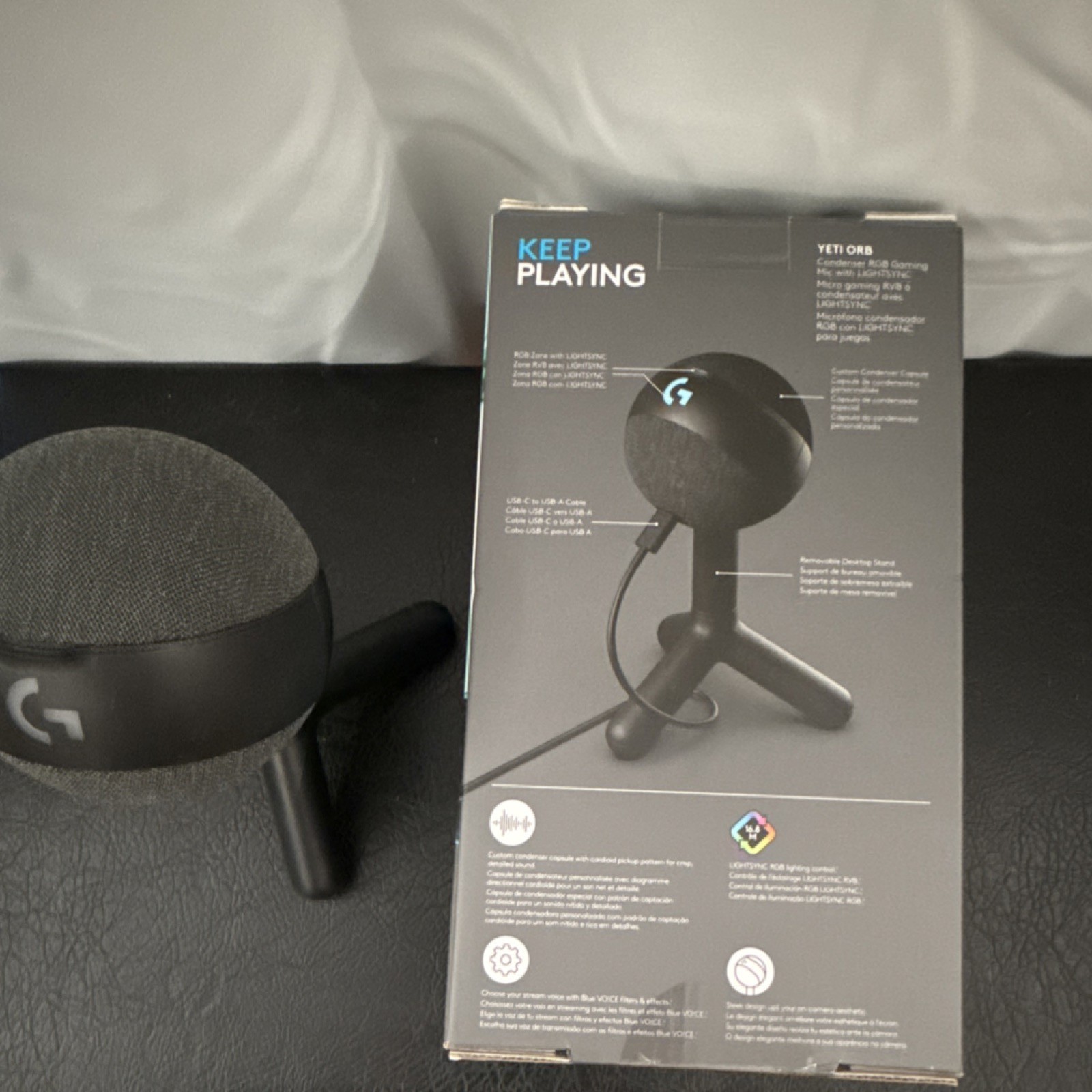 как выглядит Logitech Yeti Orb USB-C RGB Lighting Blue VO CE Cardioid Microphone Black фото