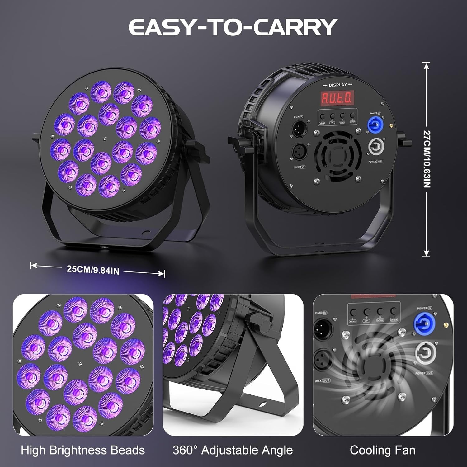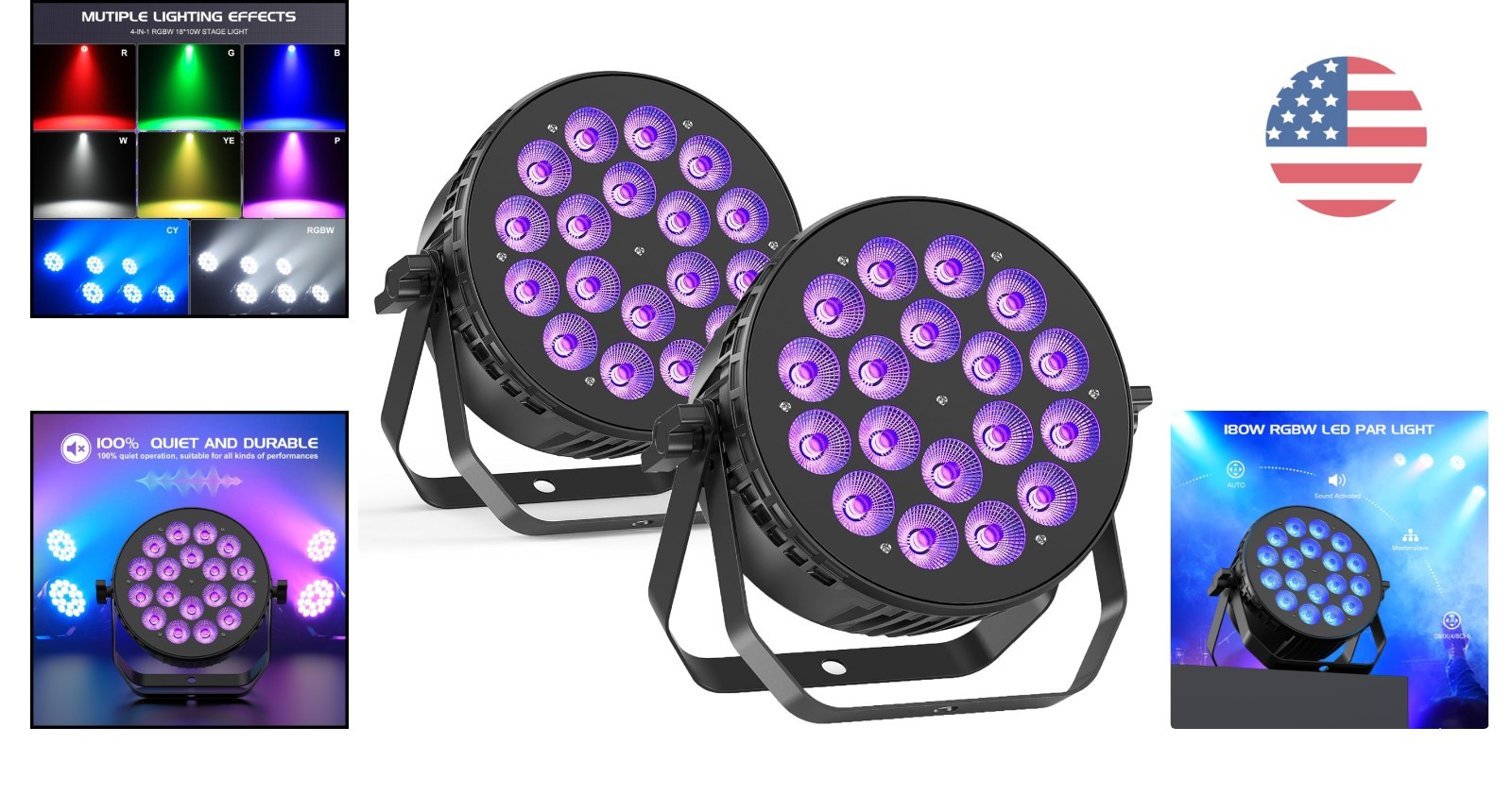 Stage Par Lights, 18X10W RGBW 4-in-1 LED DJ Par Can Light, Full Cast-Aluminum...