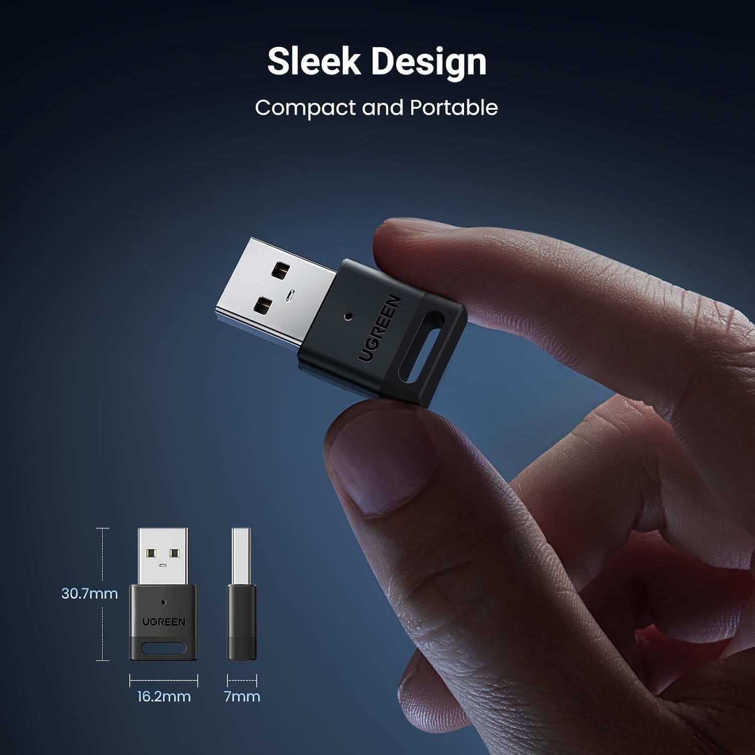 Особенности: Plug & Play, Bluetooth 5.3, Supports up to 5 Devices, Compact size, Low power consumption