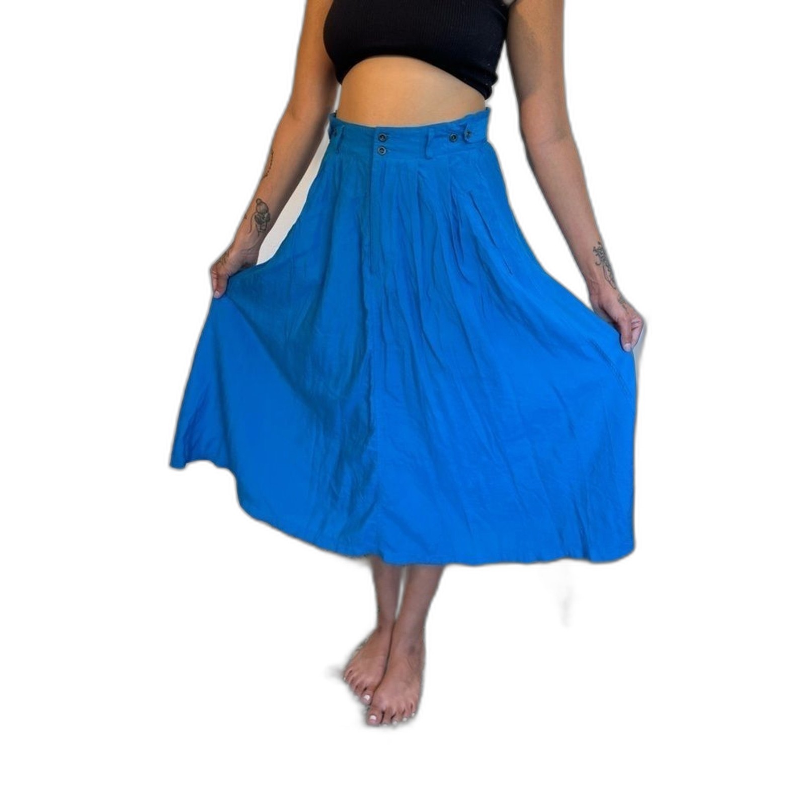 как выглядит Vintage classic A line midi skirt pockets elastic waist electric blue adjustable фото