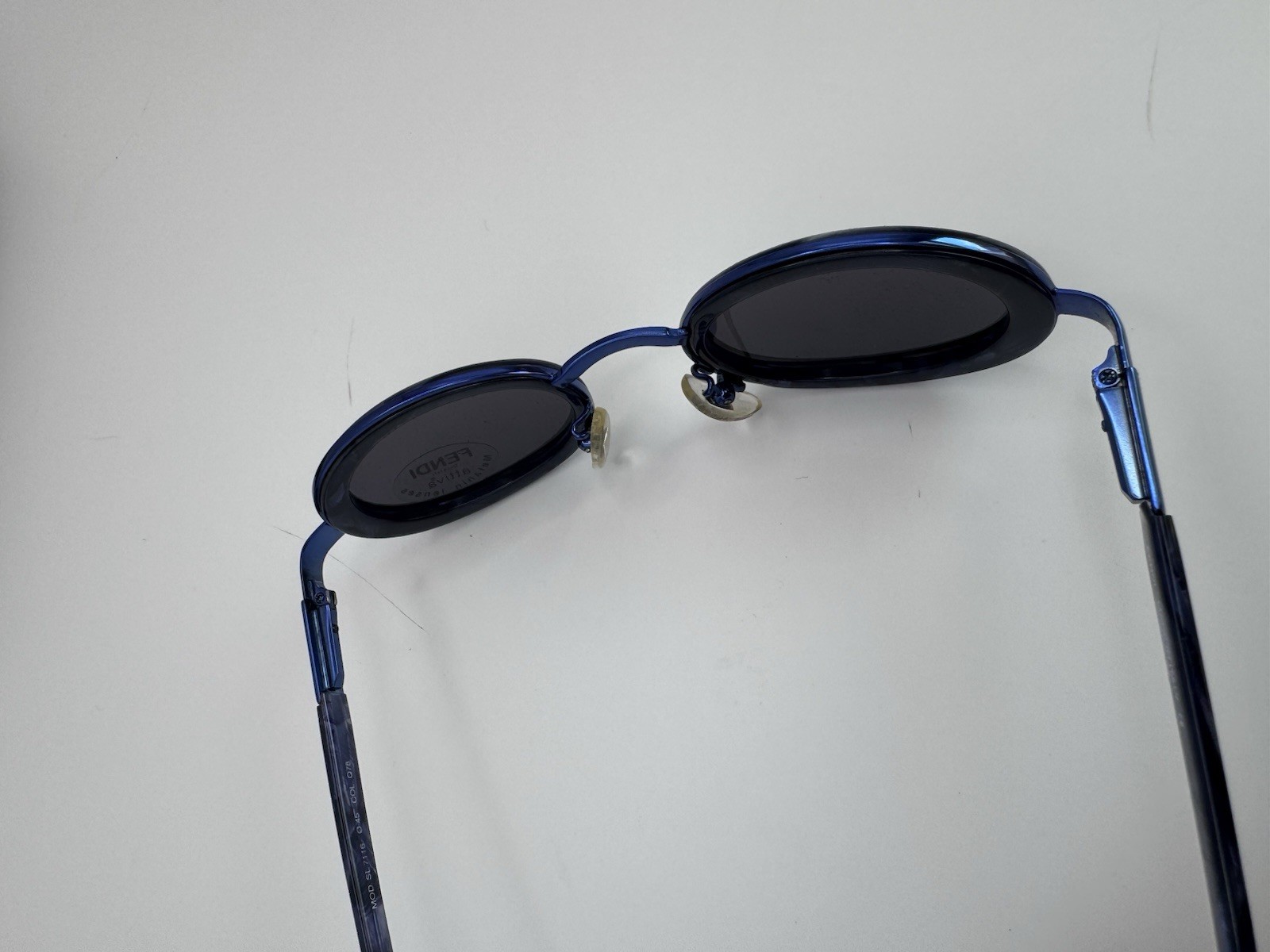 как выглядит Vintage Fendi SL 7116 Blue Oval Sunglasses Made in Italy Small Frame Y2K фото