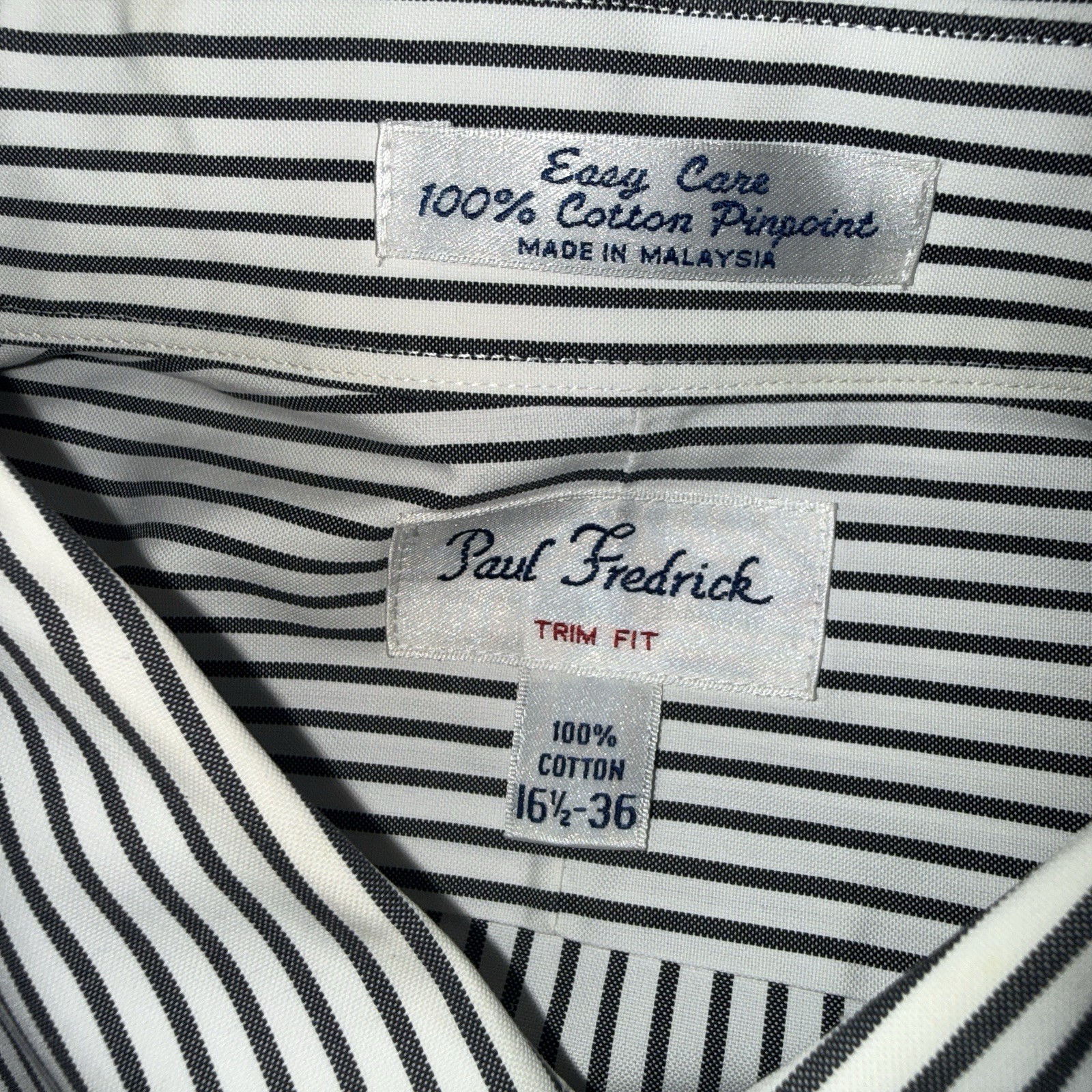 Men s Paul Fredrick Long Sleeve Trim Fit Shirt White/Blue Stripe Size 16.5 x 36
