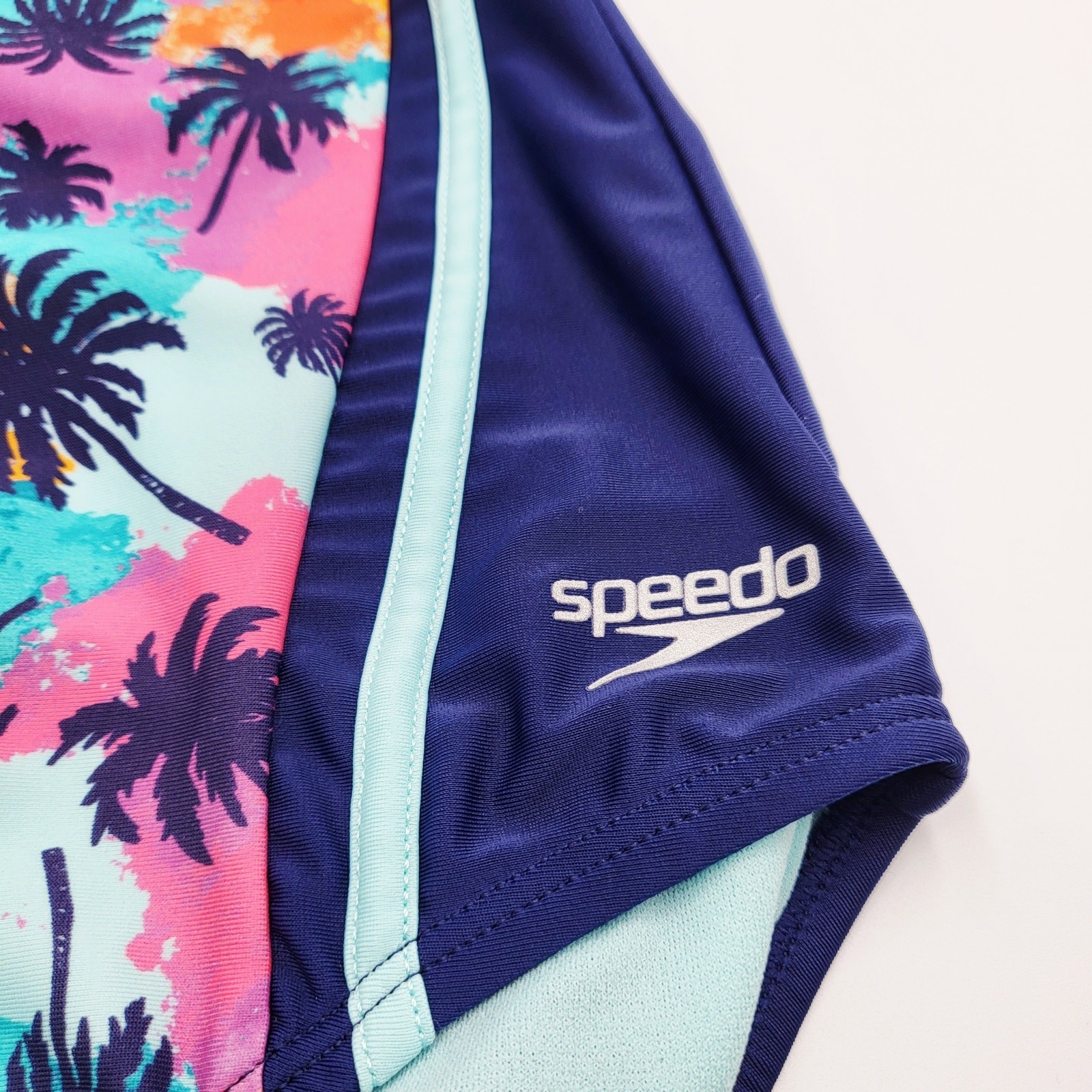 Speedo Rainbow Wave Tropical Thick Strap Razor Back One-piece Swimsuit Size 14