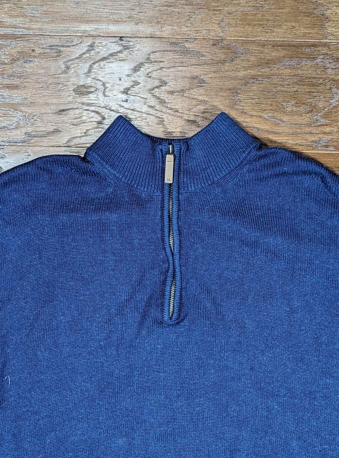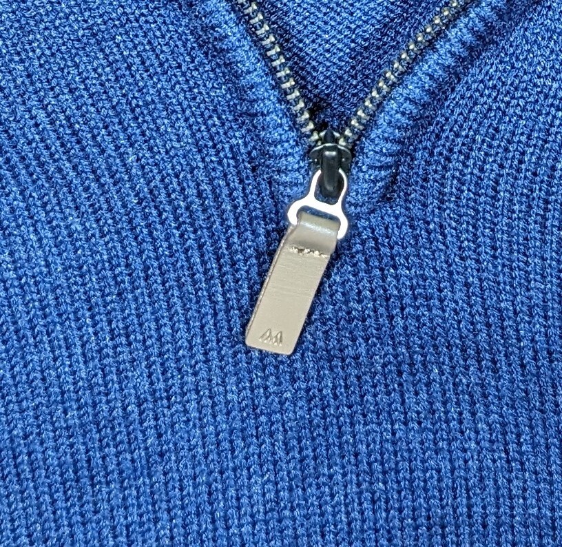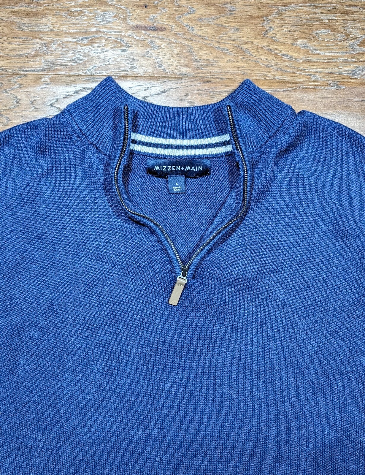 как выглядит Mizzen Main Sweater Mens Large Quarter Zip Pullover Blue Cassady Zipper Front фото