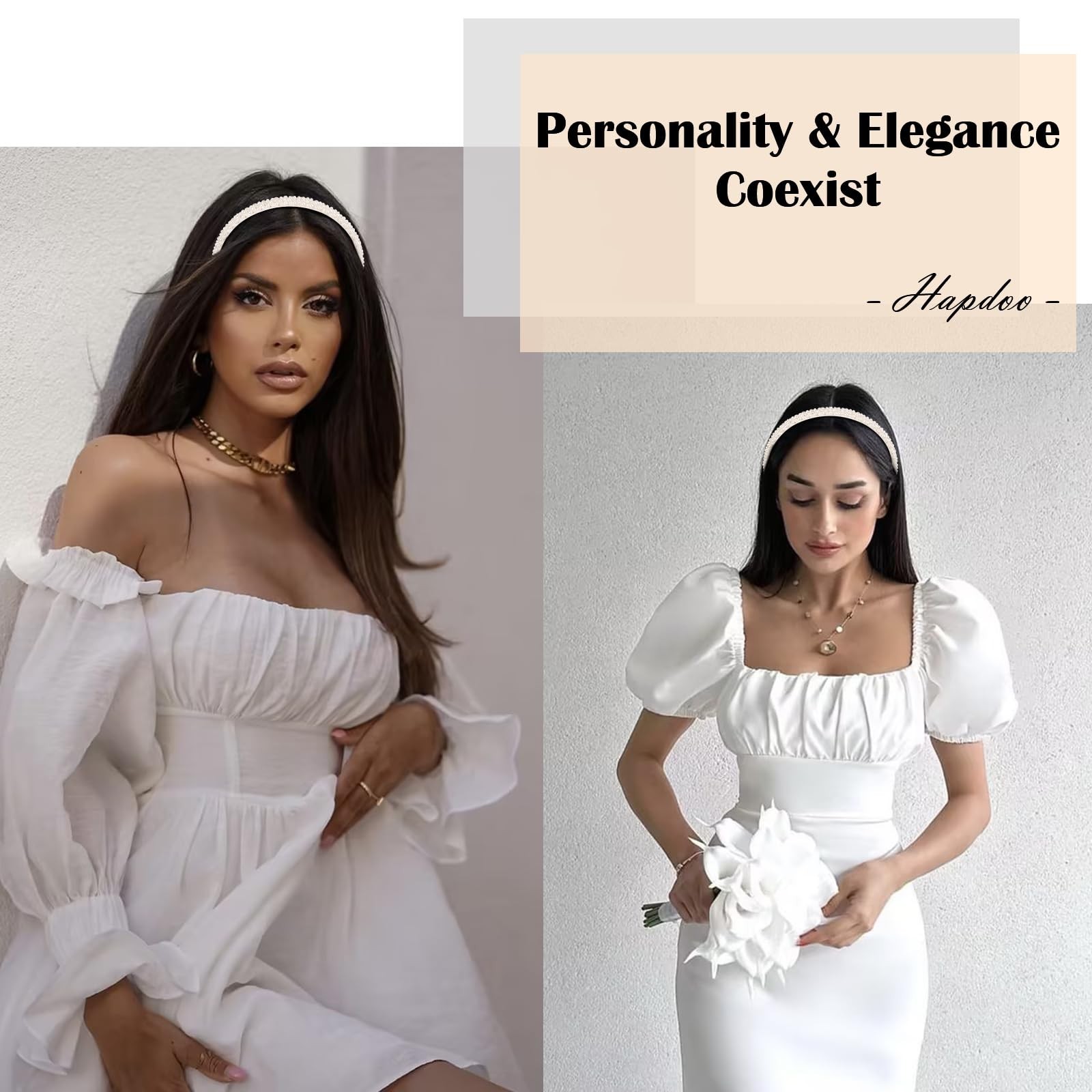 1PC White Pearl Headbands for Women Girls, Cute Beads Headband with Faux Pear...
