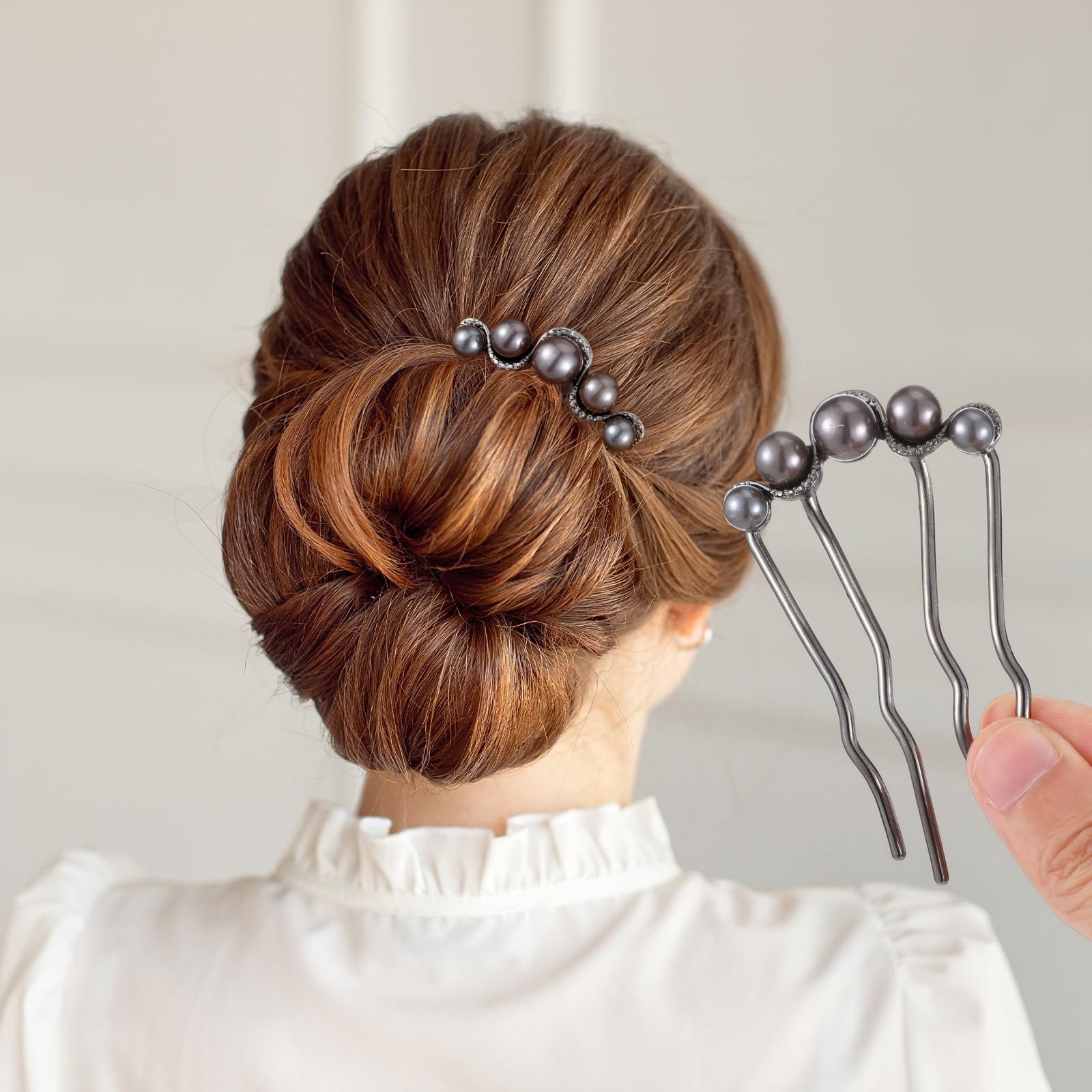 4Pcs Pearl U Shaped Hair Pins U Shaped French Twist Side Comb Elegant Vintage...