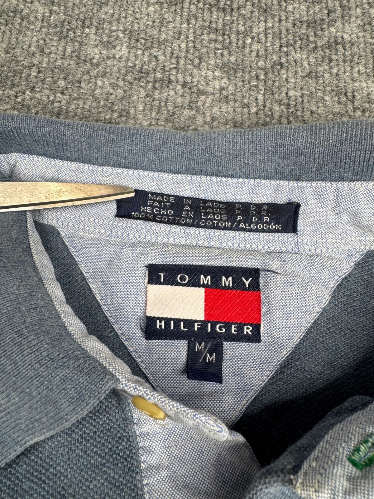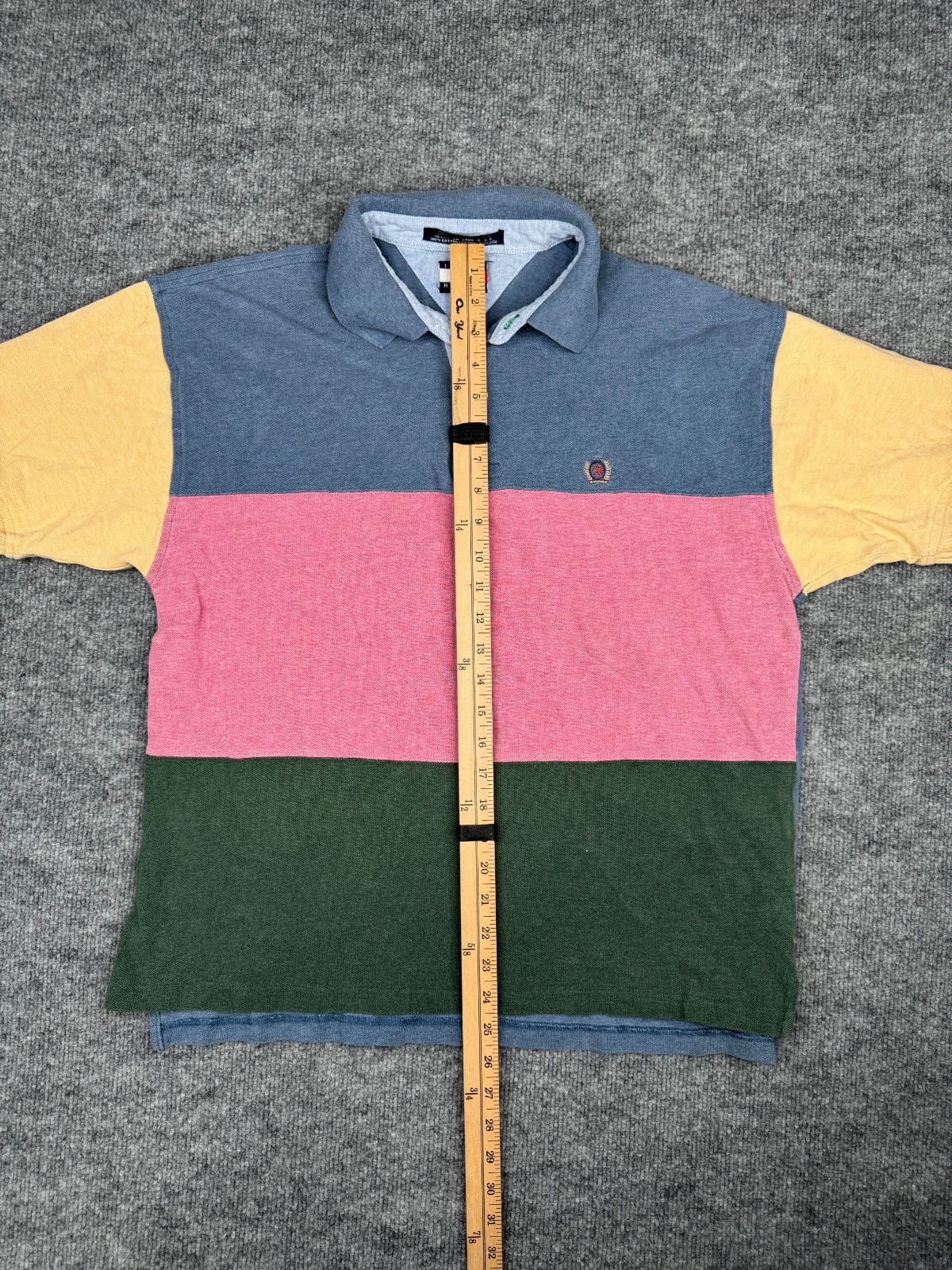 как выглядит Vtg Tommy Hilfiger Polo Shirt Mens Medium Colorblock Striped Crest Logo Y2K 90s фото
