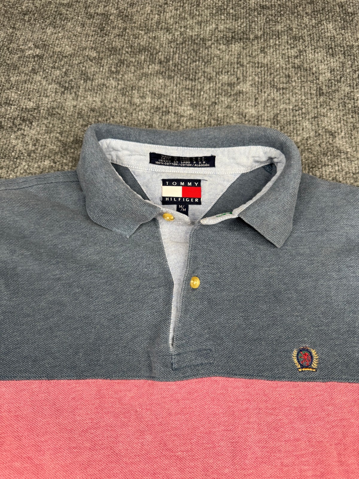 Vtg Tommy Hilfiger Polo Shirt Mens Medium Colorblock Striped Crest Logo Y2K 90s