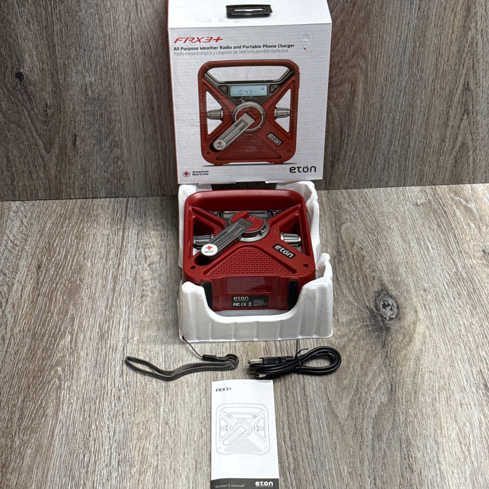 Eton FRX3 Weather Radio Portable Phone Charger Crank Solar Power 80355 Red