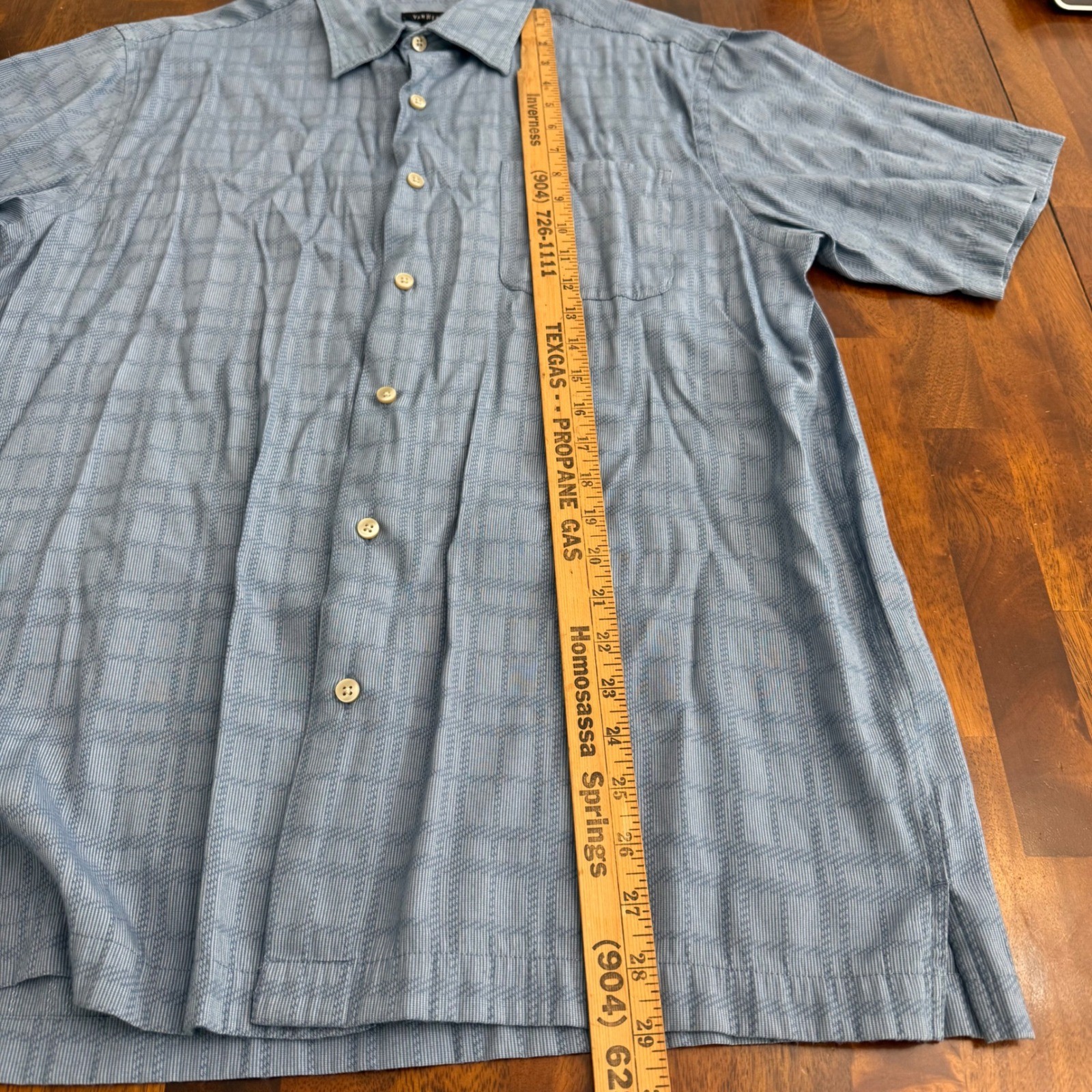 как выглядит VAN HEUSEN Mens Blue Plaid Short Sleeve Button Down Shirt Size M Rayon Blend фото