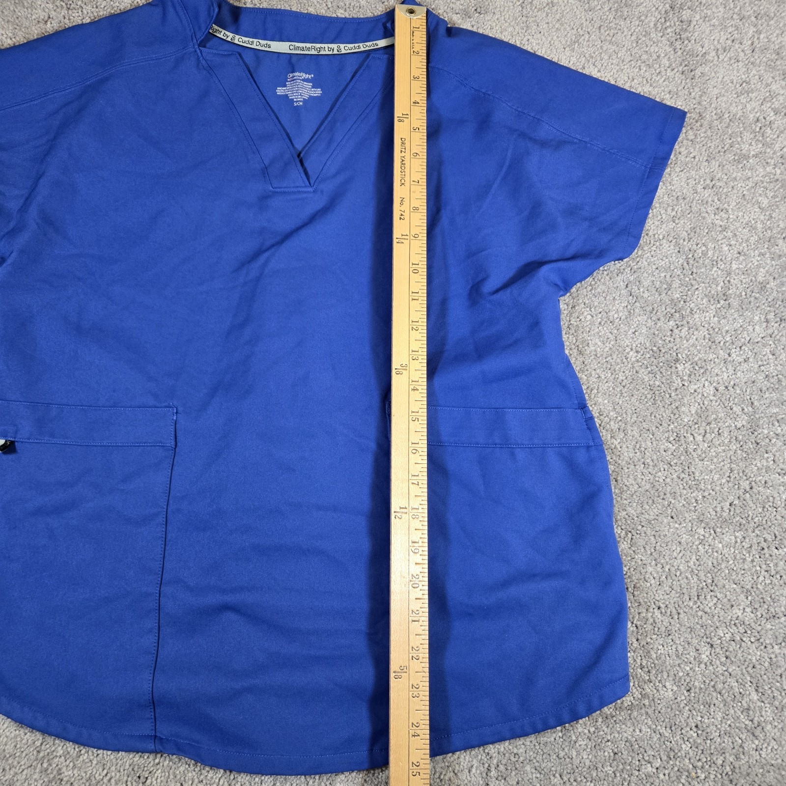 Climate Right Cuddl Duds Women s Bright Blue 6 Pocket Scrub Top Size Small