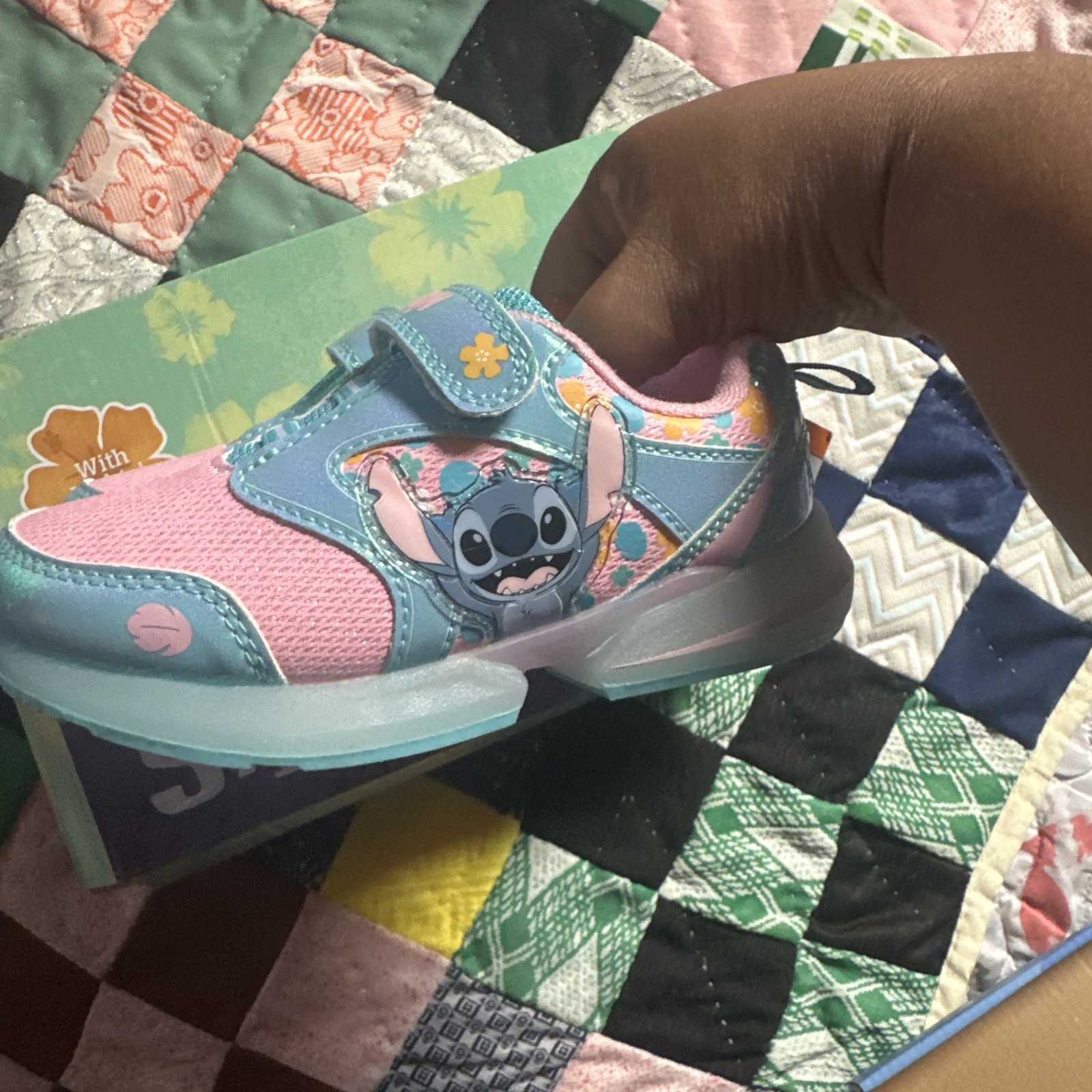 как выглядит Disney Stitch Kids Sneakers Pink Blue Size 10Hook Loop Casual Shoes фото