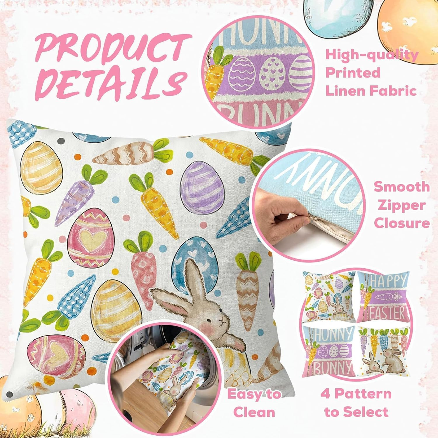 Easter Pillow Covers 18X18 Inch Set of 4, Bunny Throw Pillow Covers for Easter D