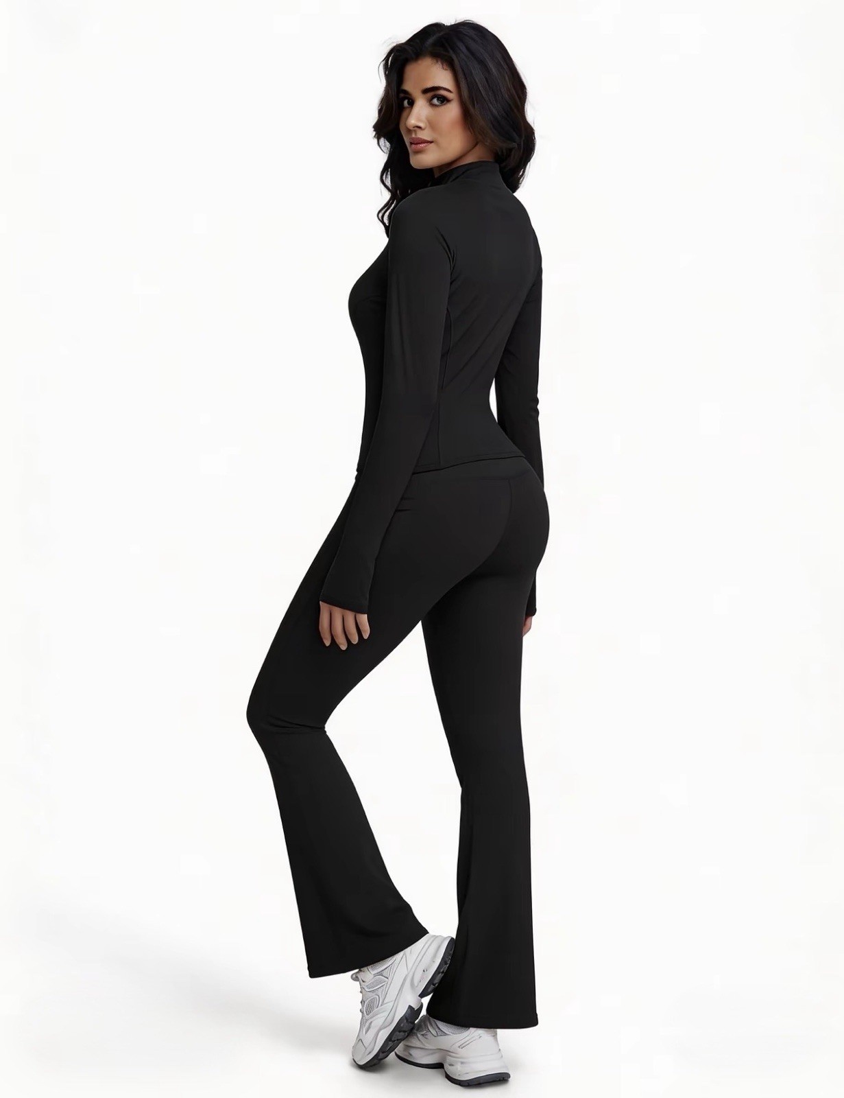 Women s Black 2 Piece Yoga Set Zip Jacket Flare Leggings Loungewear