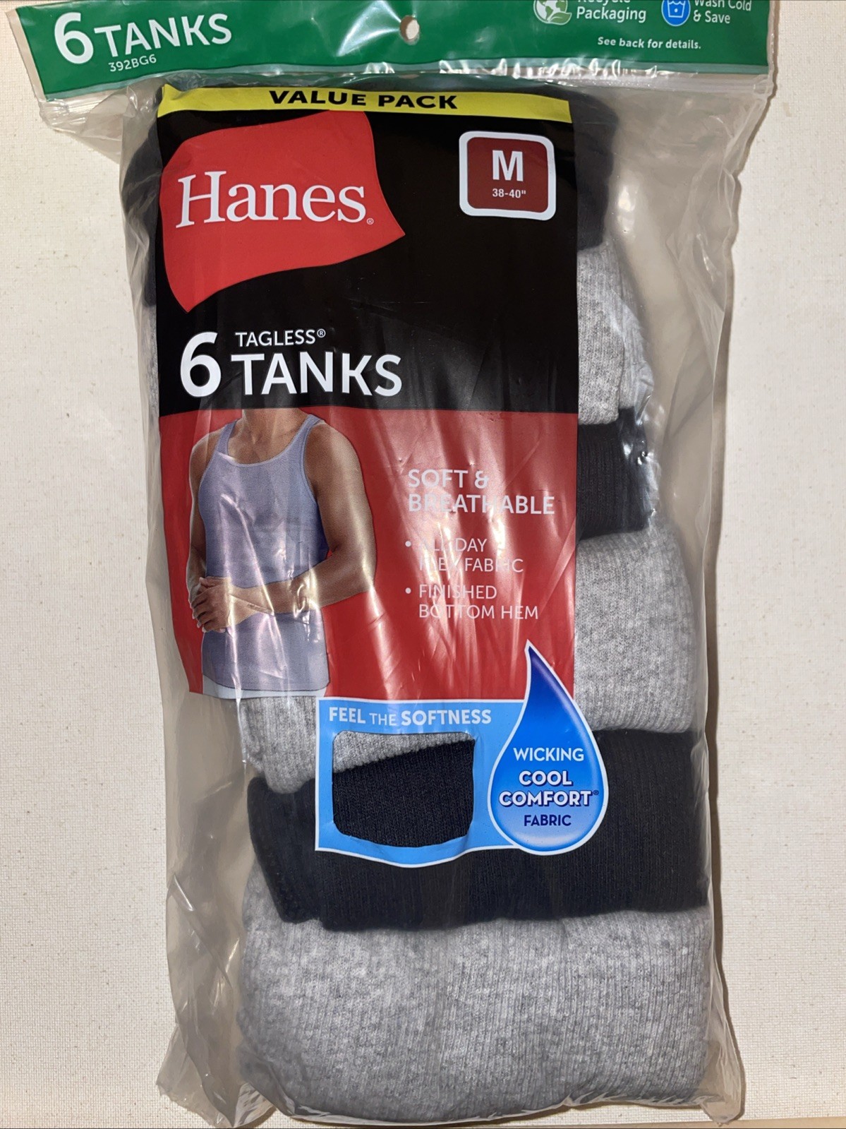Hanes Men's Tagless Comfort Soft Tank Top Shirts Undershirts Black Grey 6-Pack M
