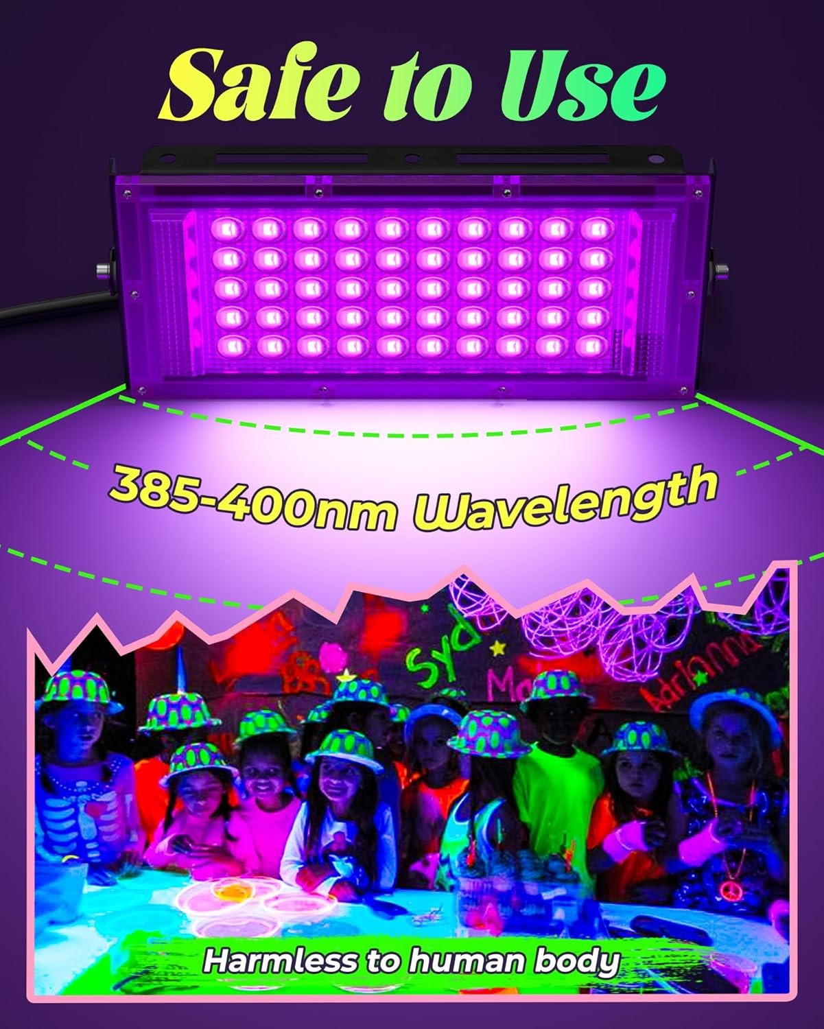 2 Pack 50W LED Black Light, Blacklight Flood Light for Glow Party IP66 Waterproo