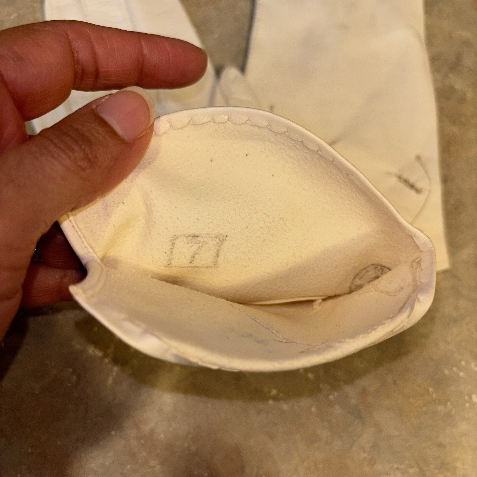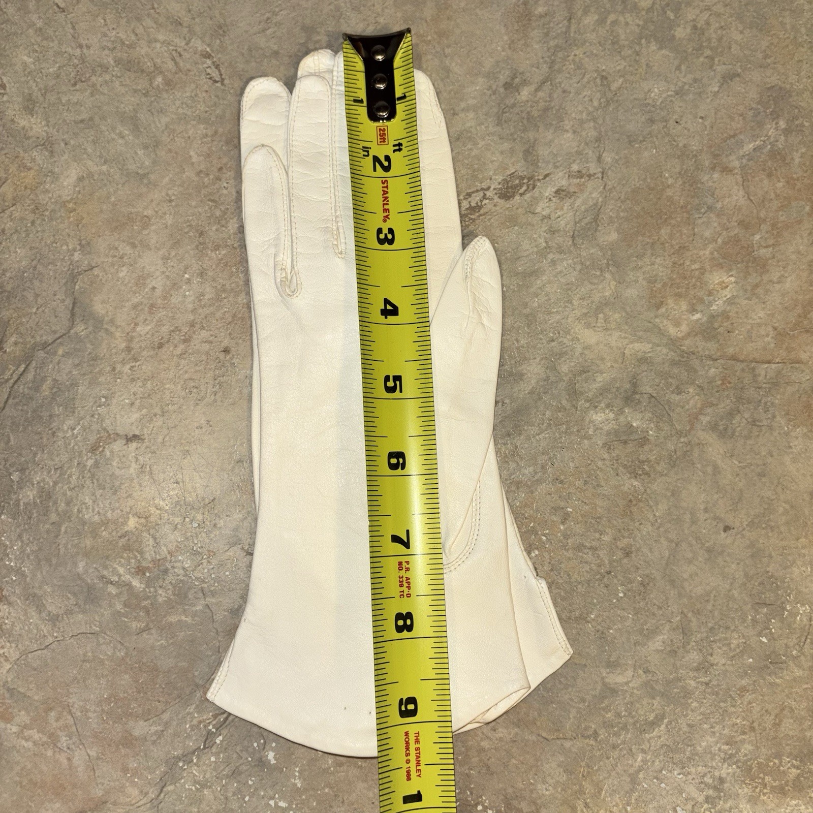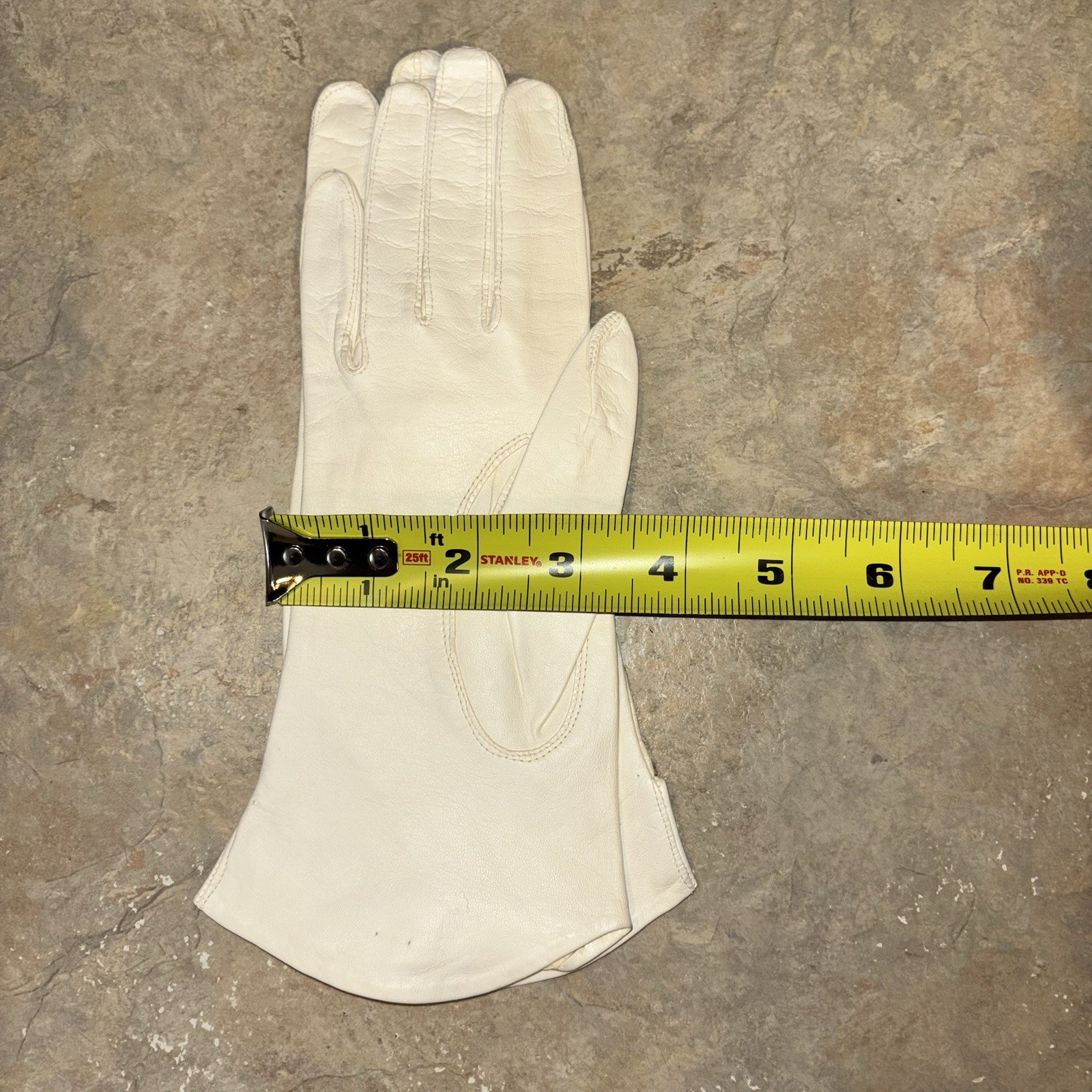 как выглядит Vintage 60s Girls Kid White Leather 9" Floral Embroidery Gloves 7 Made In Italy фото