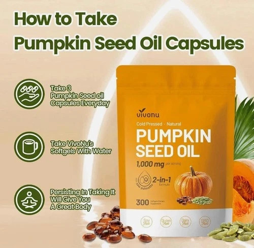 Pumpkin Seed Oil with Saw Palmetto Hair Loss Capsules, 300 Softgels