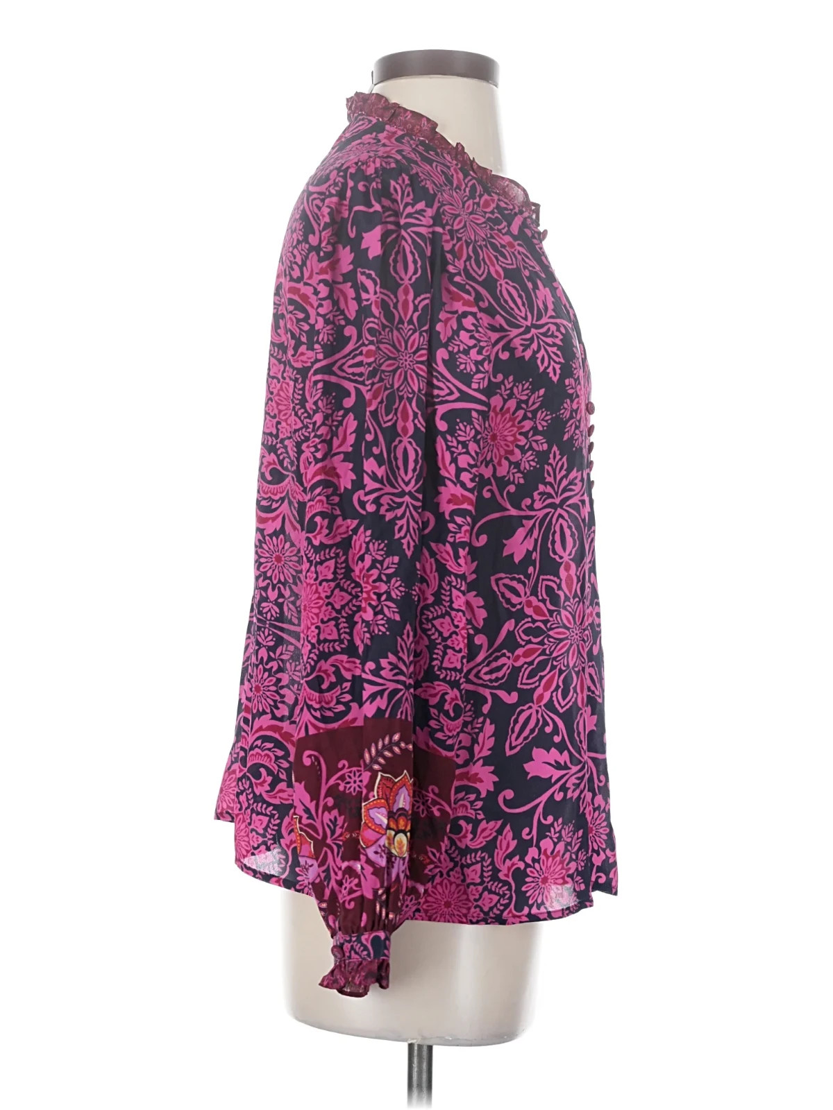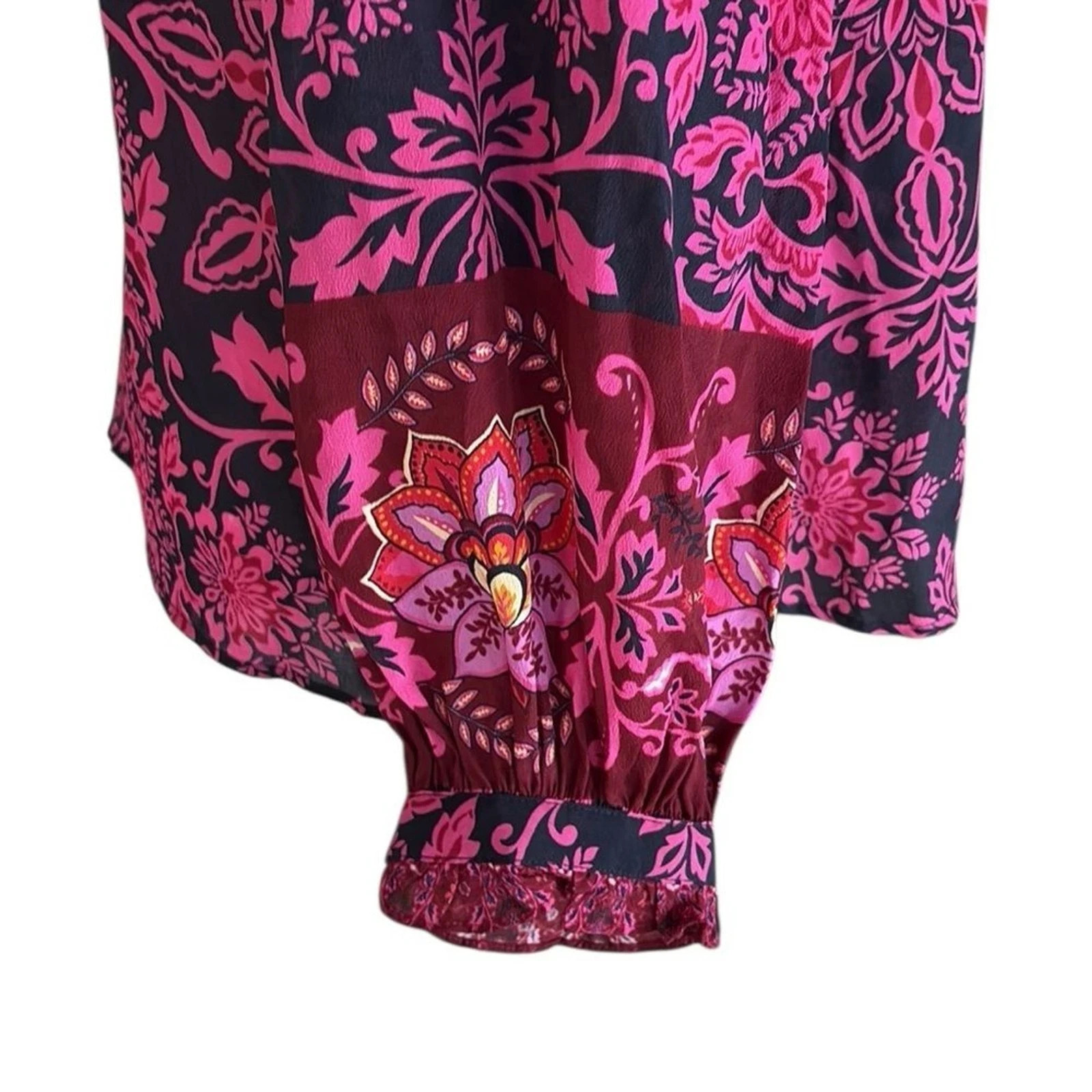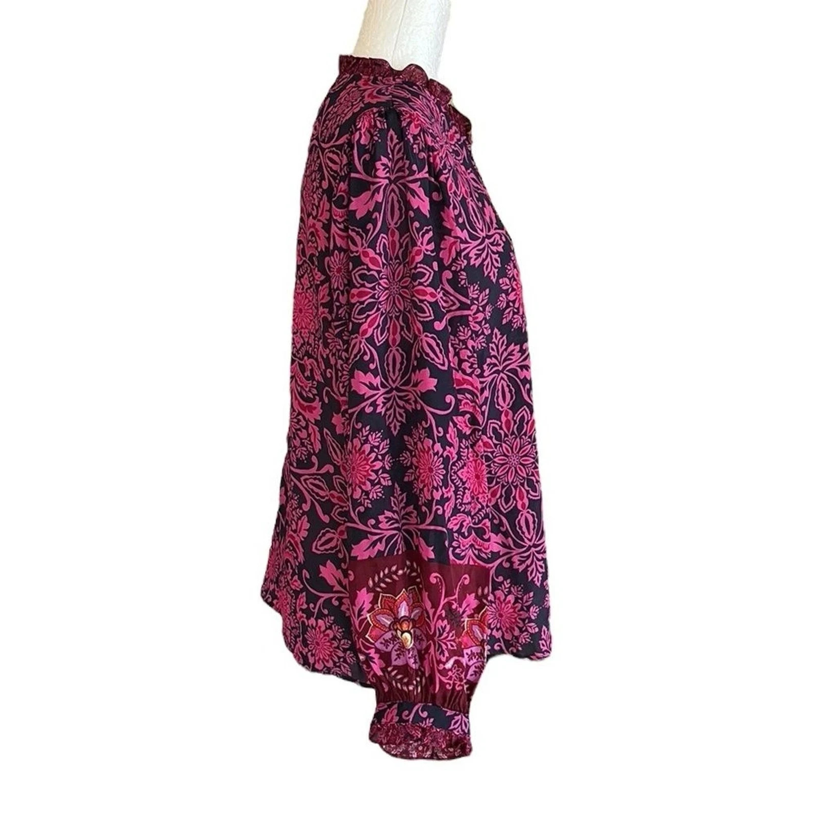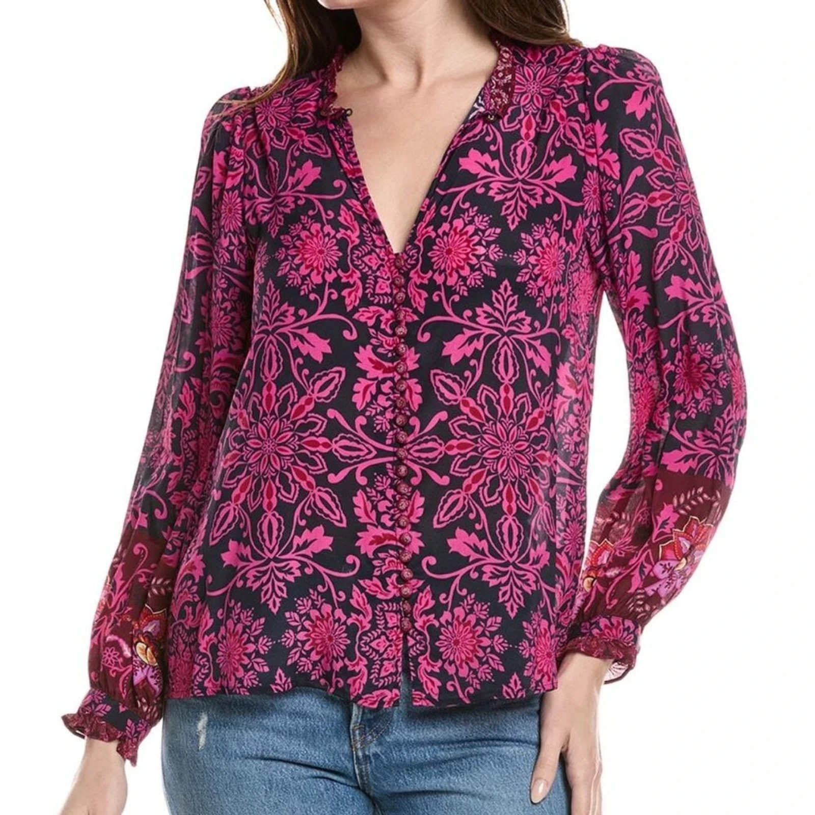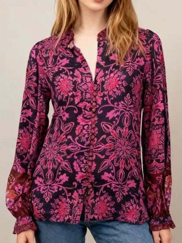 как выглядит Johnny Was Jade Steffie Blouse S Luscious Silk Blend, Alixa Floral Print, Ruffle фото
