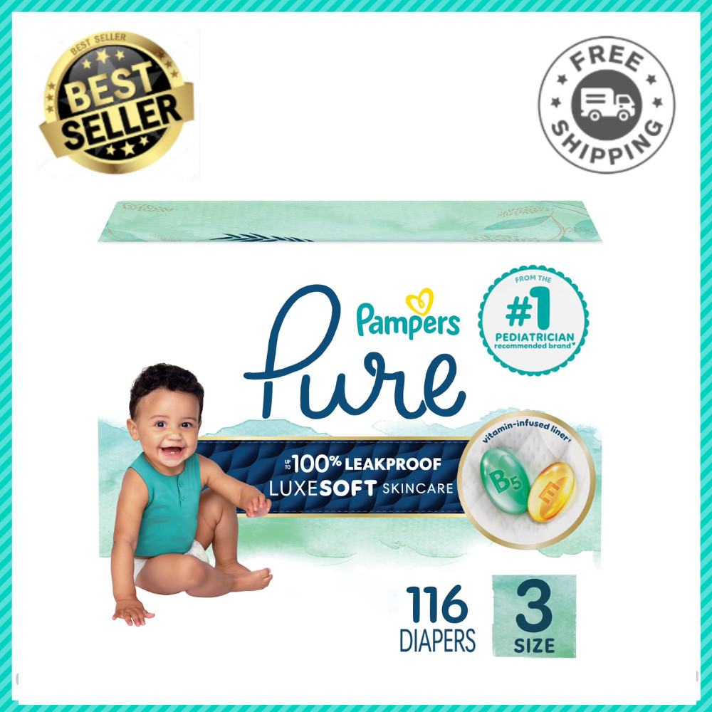 Pampers Pure Protection Diapers, Size 3 16-28 lbs , 116 Count, Hypoallergenic