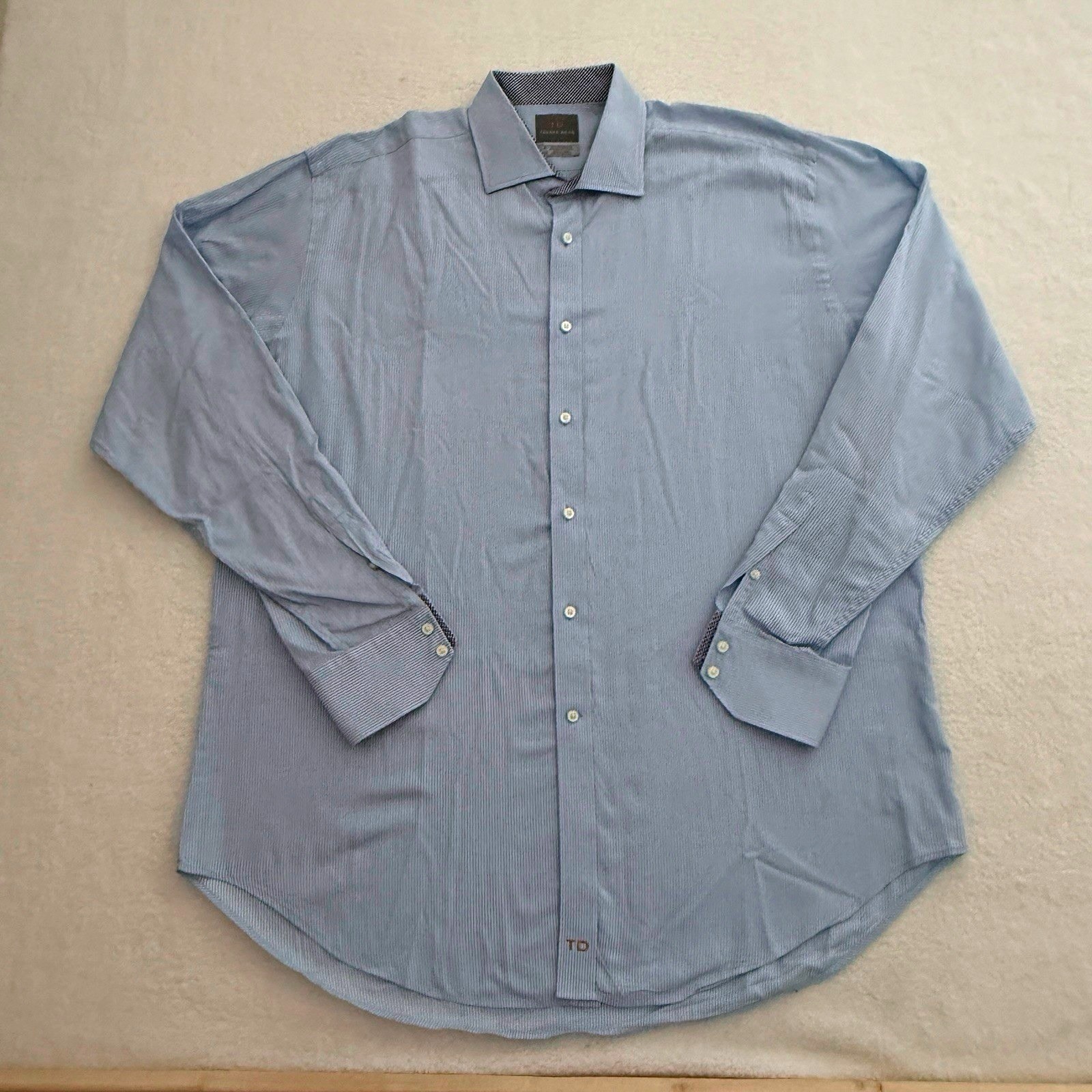 как выглядит Thomas Dean Mens XL Long Sleeve Button Up Blue Striped Shirt Pima Cotton фото