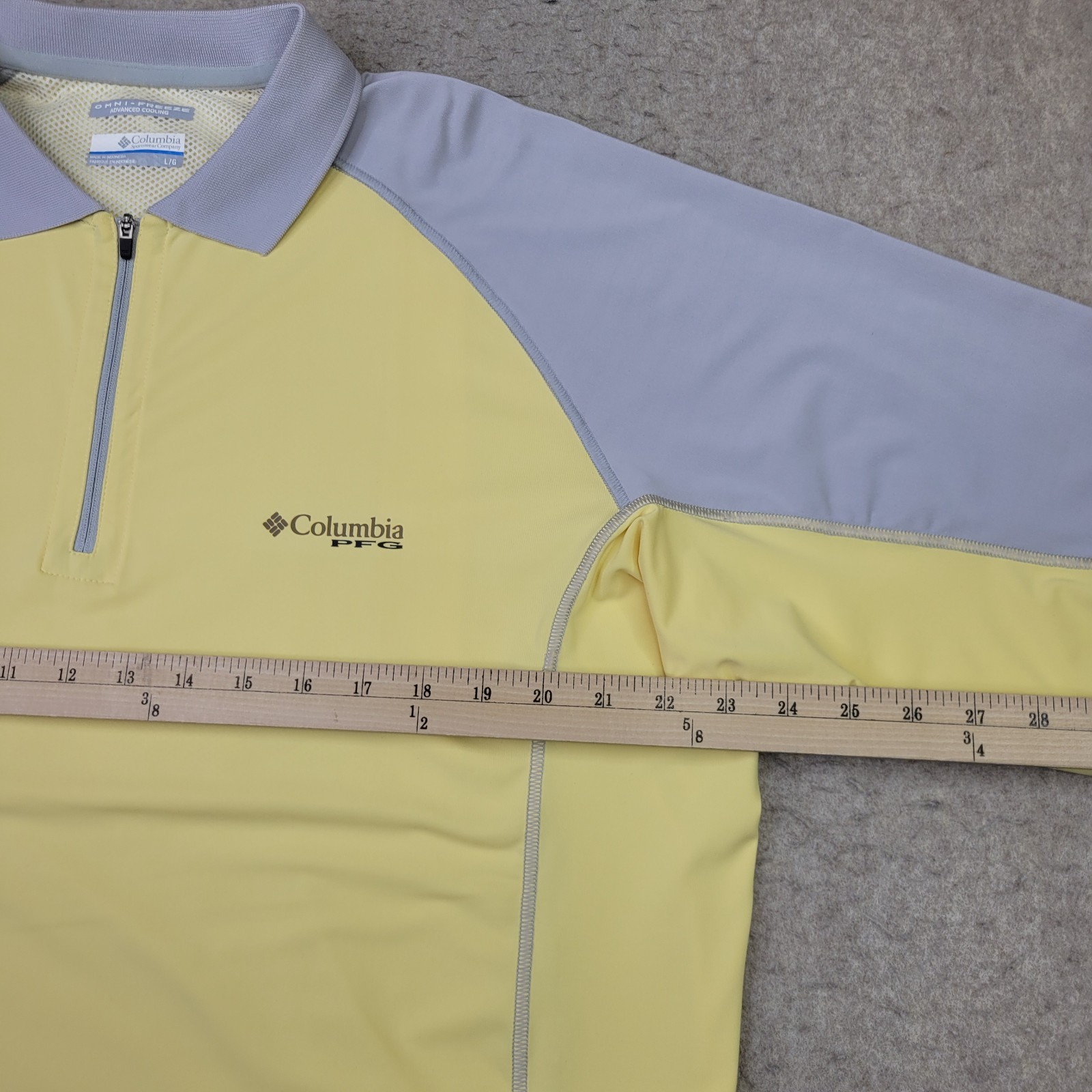 как выглядит Columbia PFG OmniFreeze Zip Polo Shirt Mens L Yellow Gray Short Sleeve Vented фото