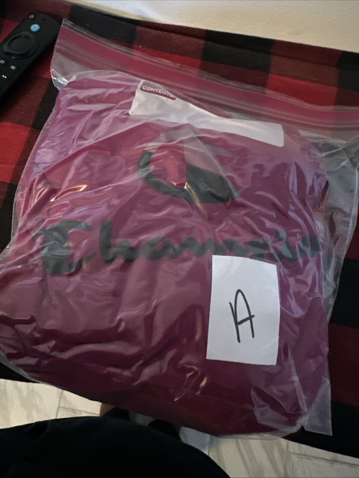как выглядит Champion Authentic Womens Medium Fuchsia Purple Hoodie Sweater Spell Out Logo фото