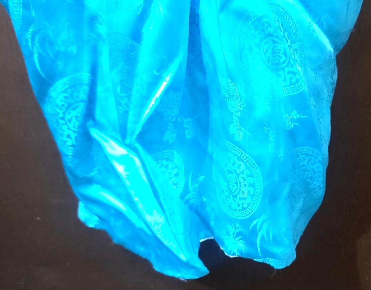 как выглядит VINTAGE 1966-1967 TURQUOISE TRADITIONAL SILK VIETNAMES SILK ROBE фото