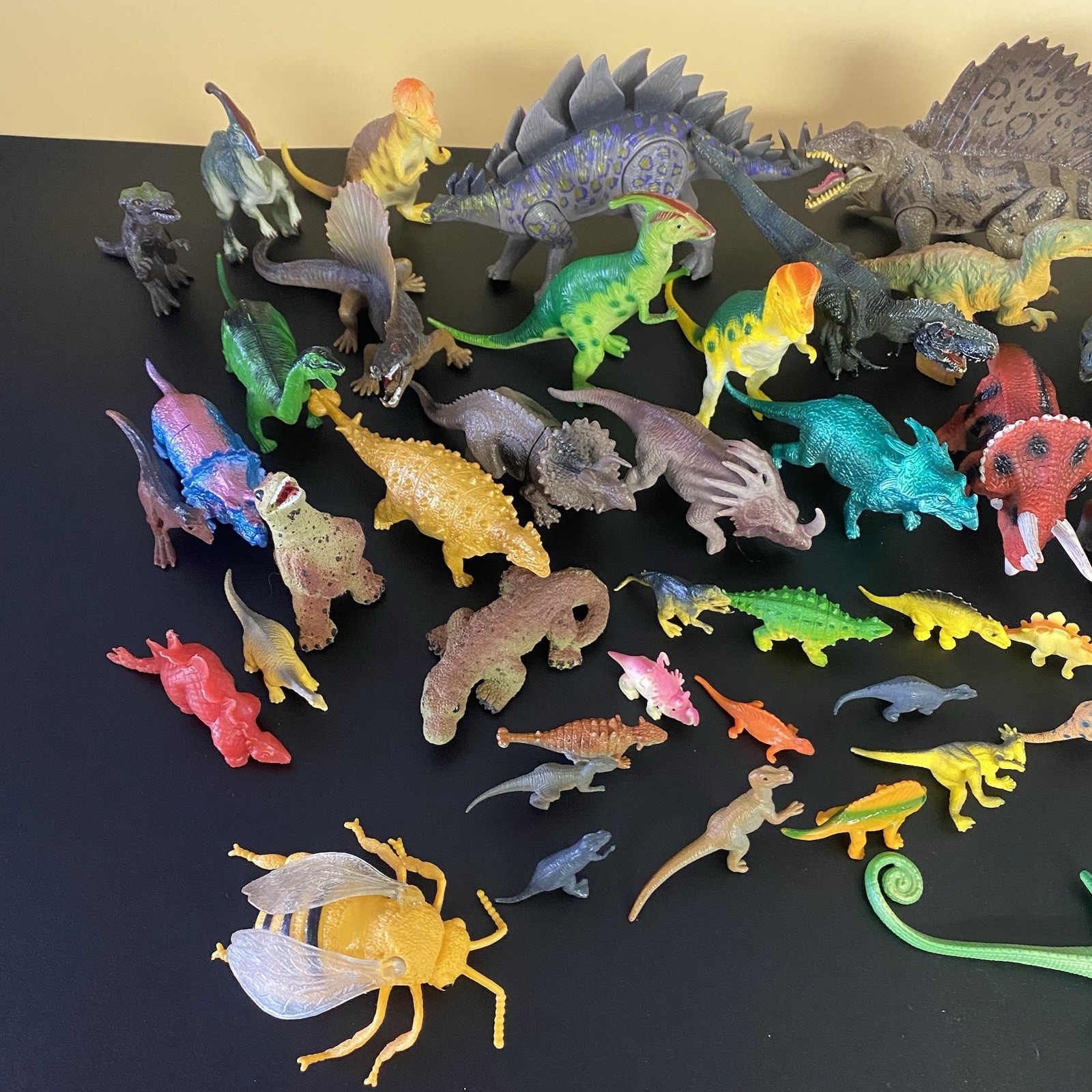 • Lot 60 Vintage Plastic Dinosaur Figures Mixed Prehistoric Toy Bundle Bulk