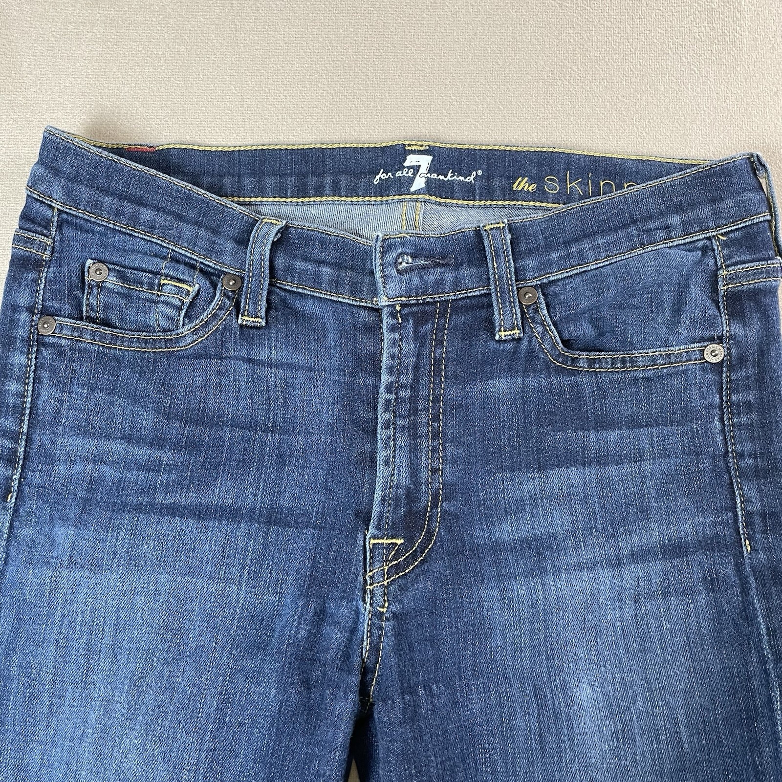 как выглядит 7 For All Mankind The Skinny Blue Wash Denim Jeans Womens Size 27 фото