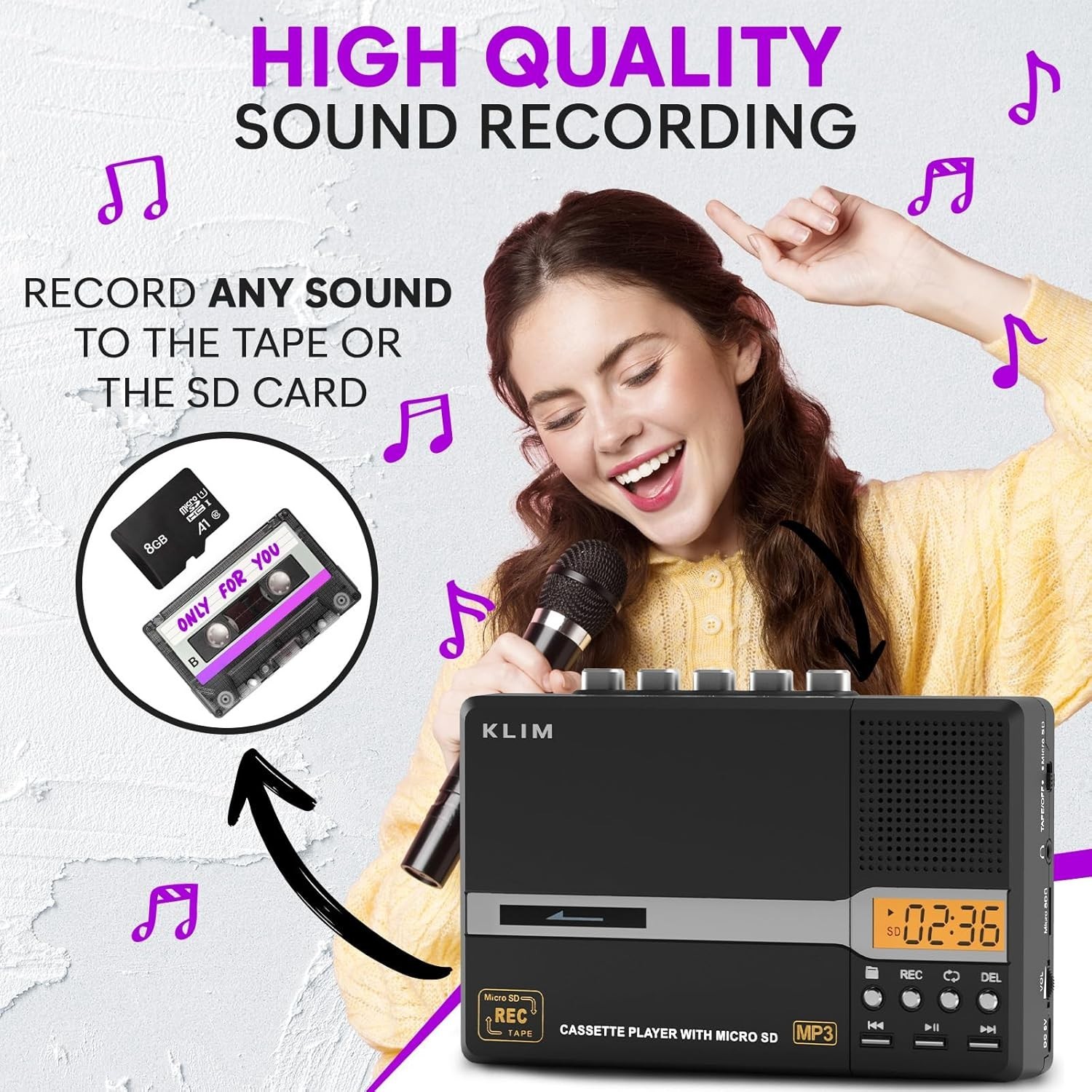 KLIM K10 Portable Cassette Tape Player Recorder, MP3 Converter 8GB SD Card
