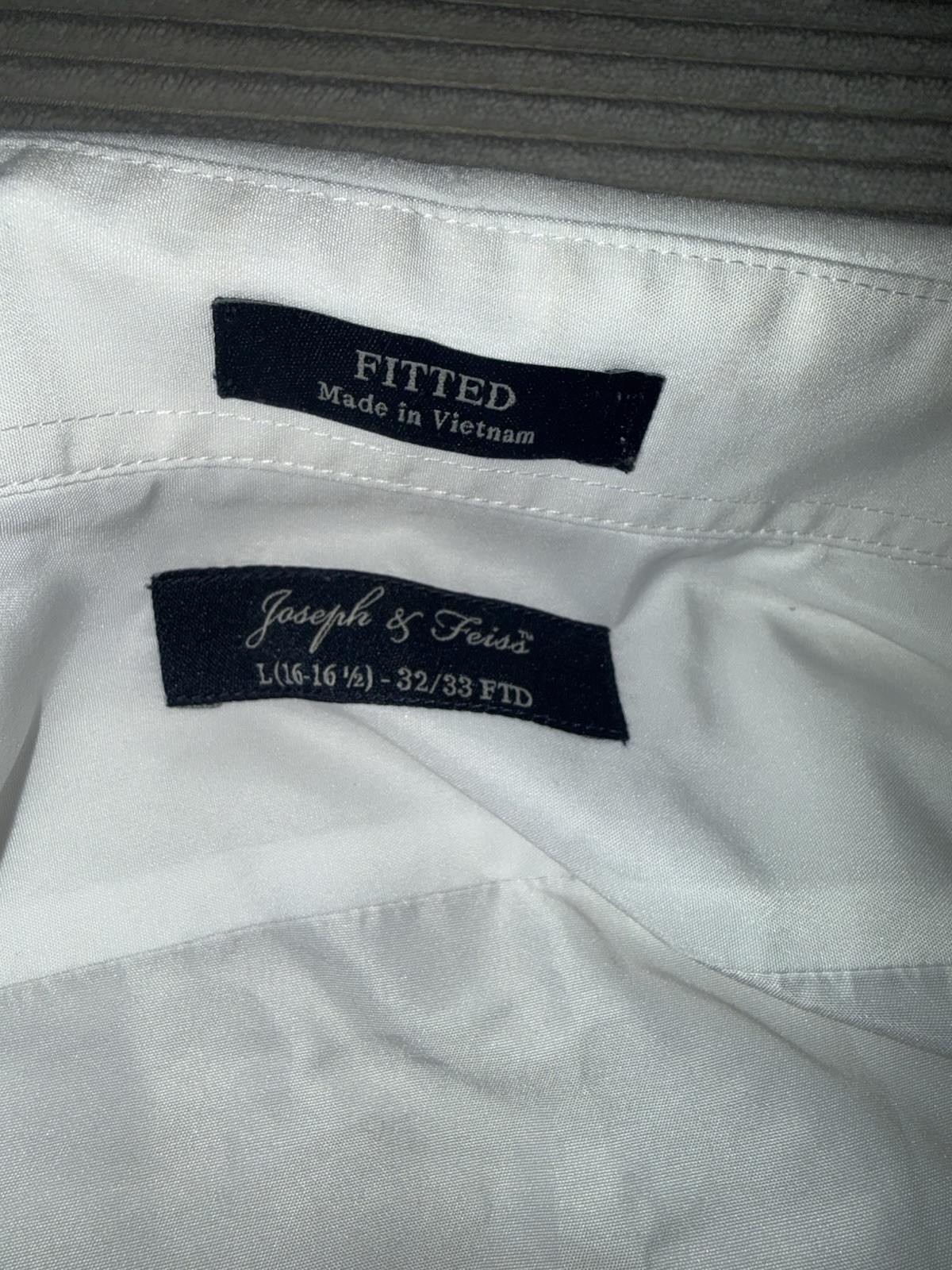 Joseph Feiss Men's Fitted Solid White Dress Shirt L 16-16.5 32/33 Long Sleeve