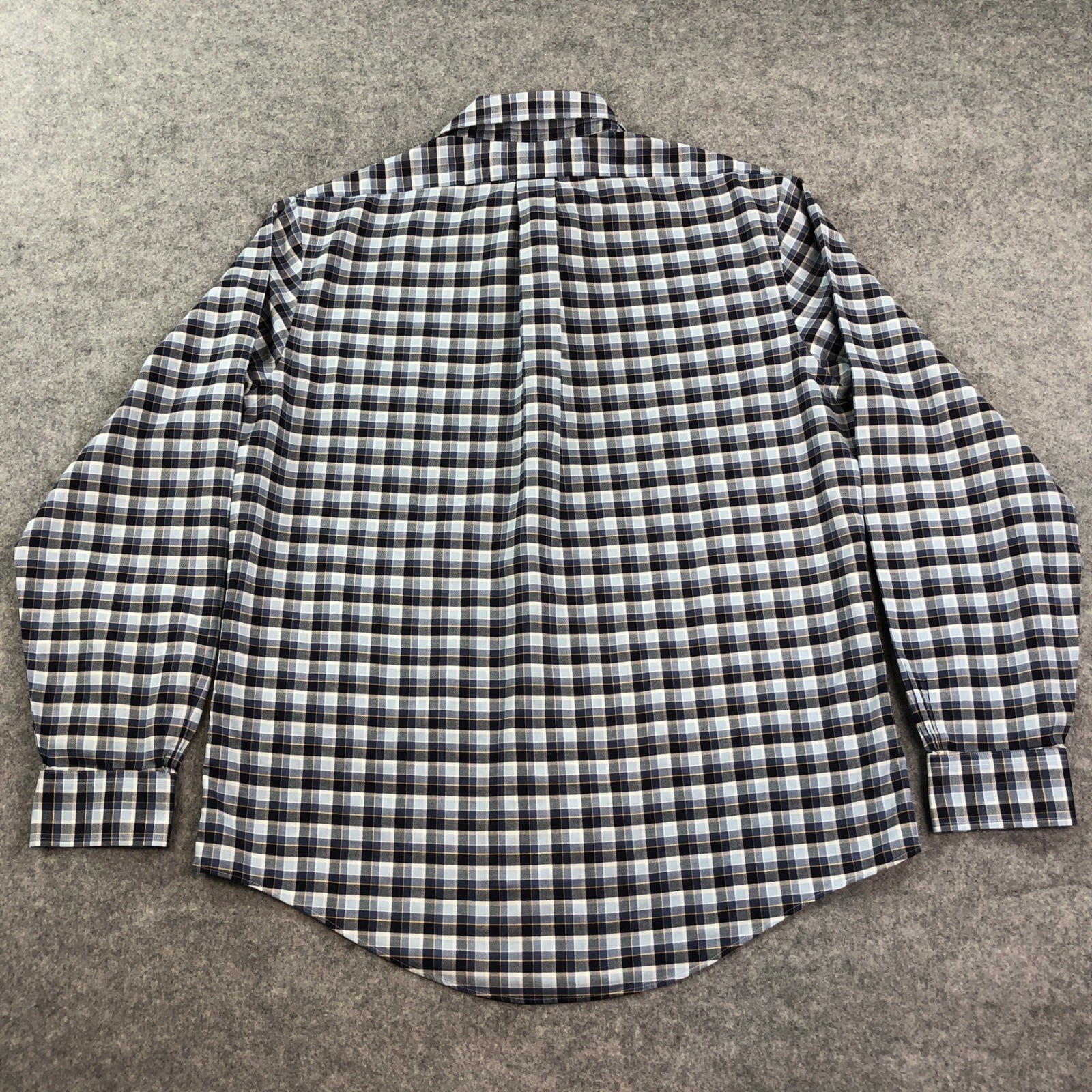 как выглядит Brooks Brothers Mens Button Down Shirt Large Plaid Blue Non-Iron Supima Cotton фото