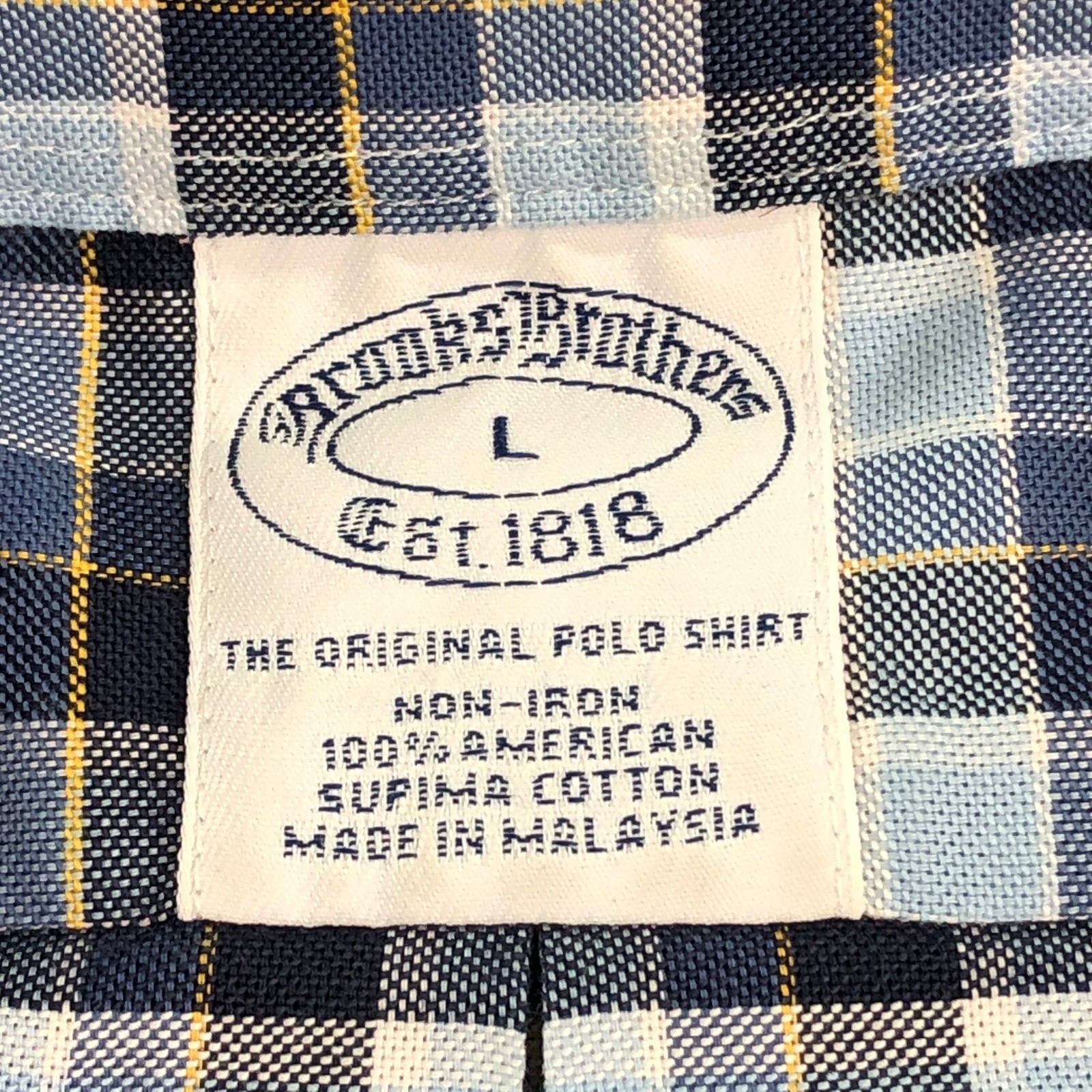 Brooks Brothers Mens Button Down Shirt Large Plaid Blue Non-Iron Supima Cotton