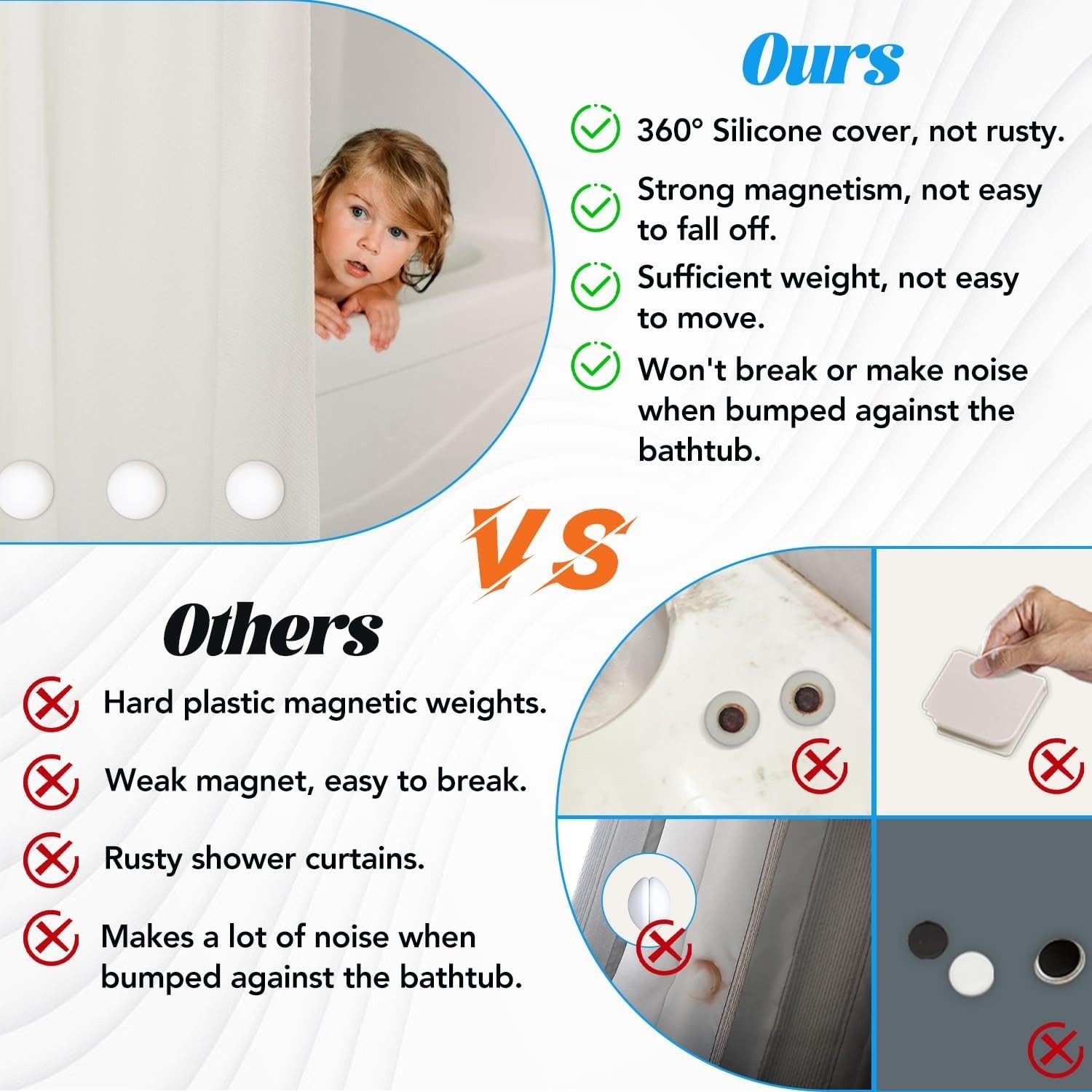 8 Pcs Shower Curtain Weights Silicone Wrapped Heavy Duty Shower Curtain Magnets