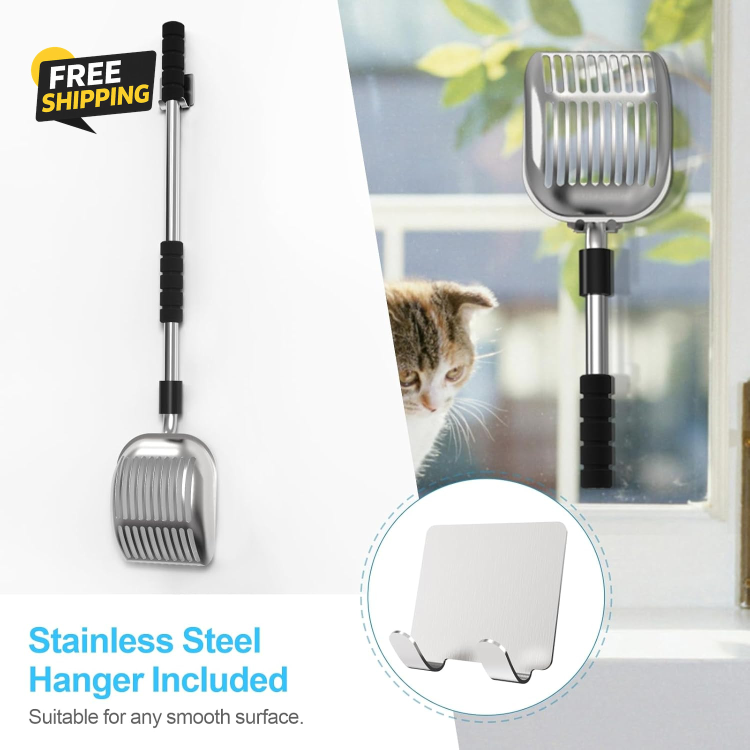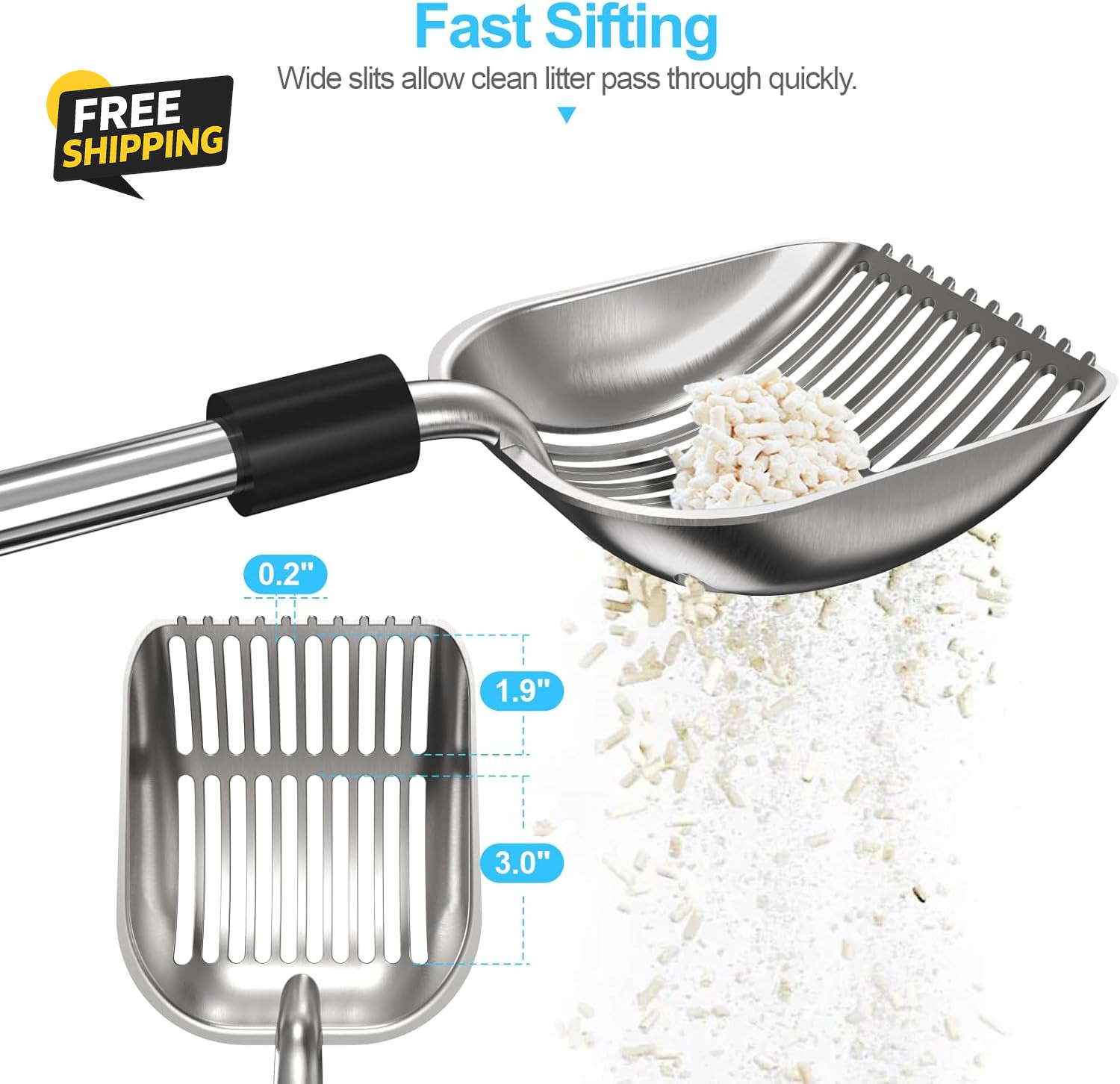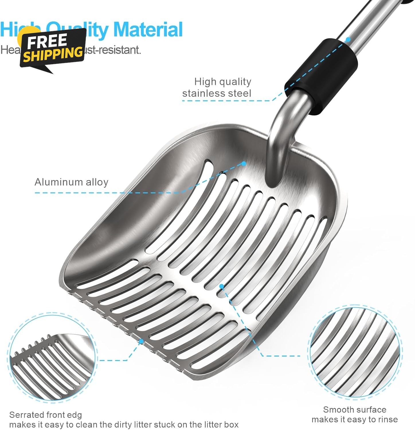 Cat Litter Scoop, Metal Litter Scooper with Deep Shovel, Detachable Long Handle