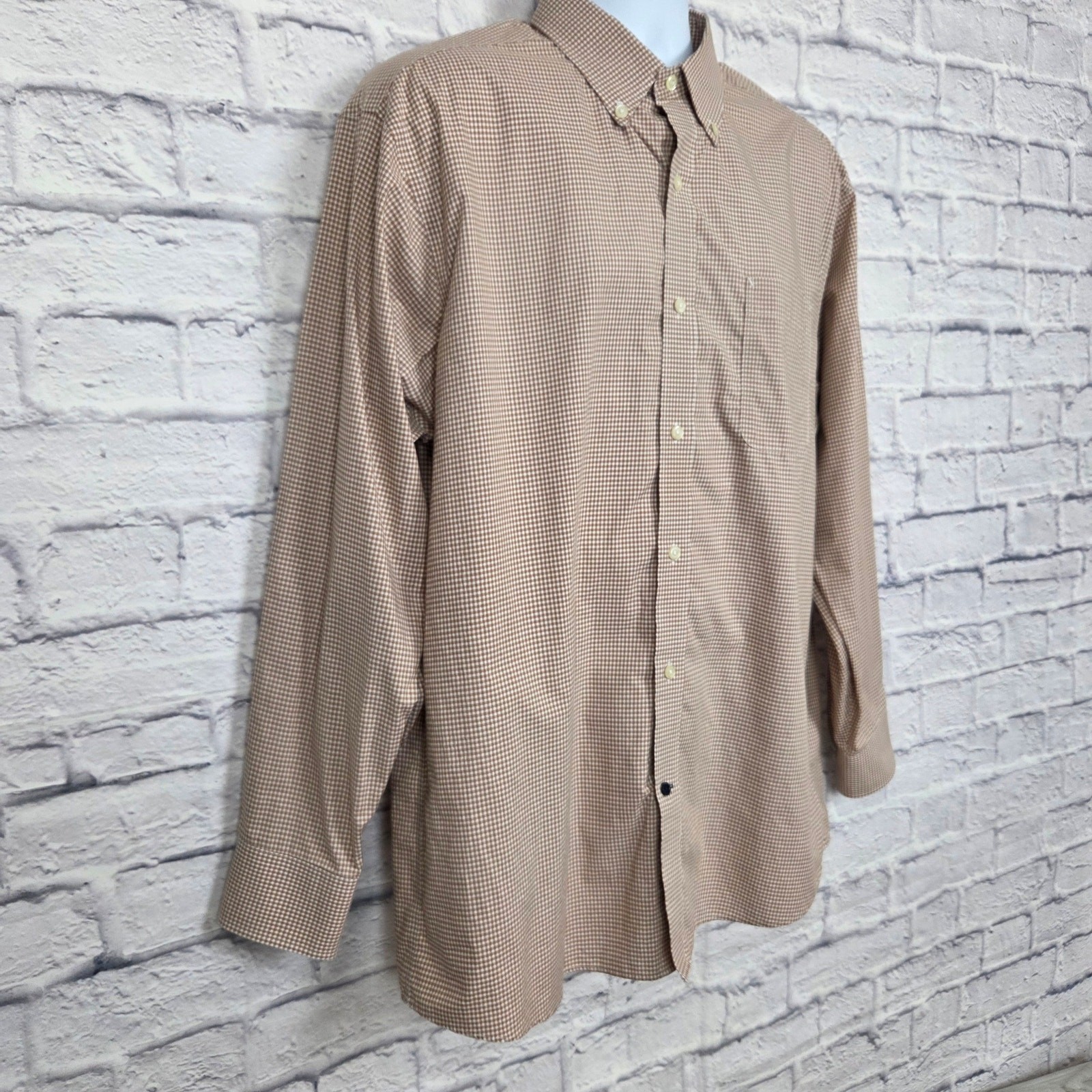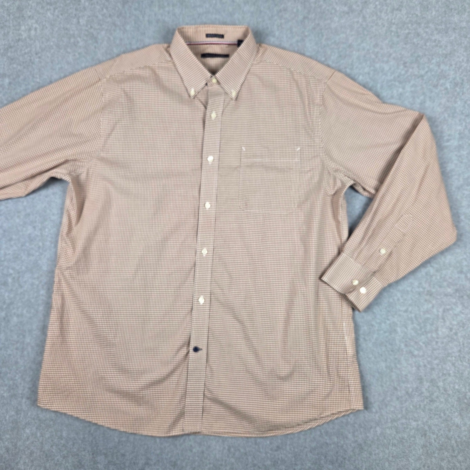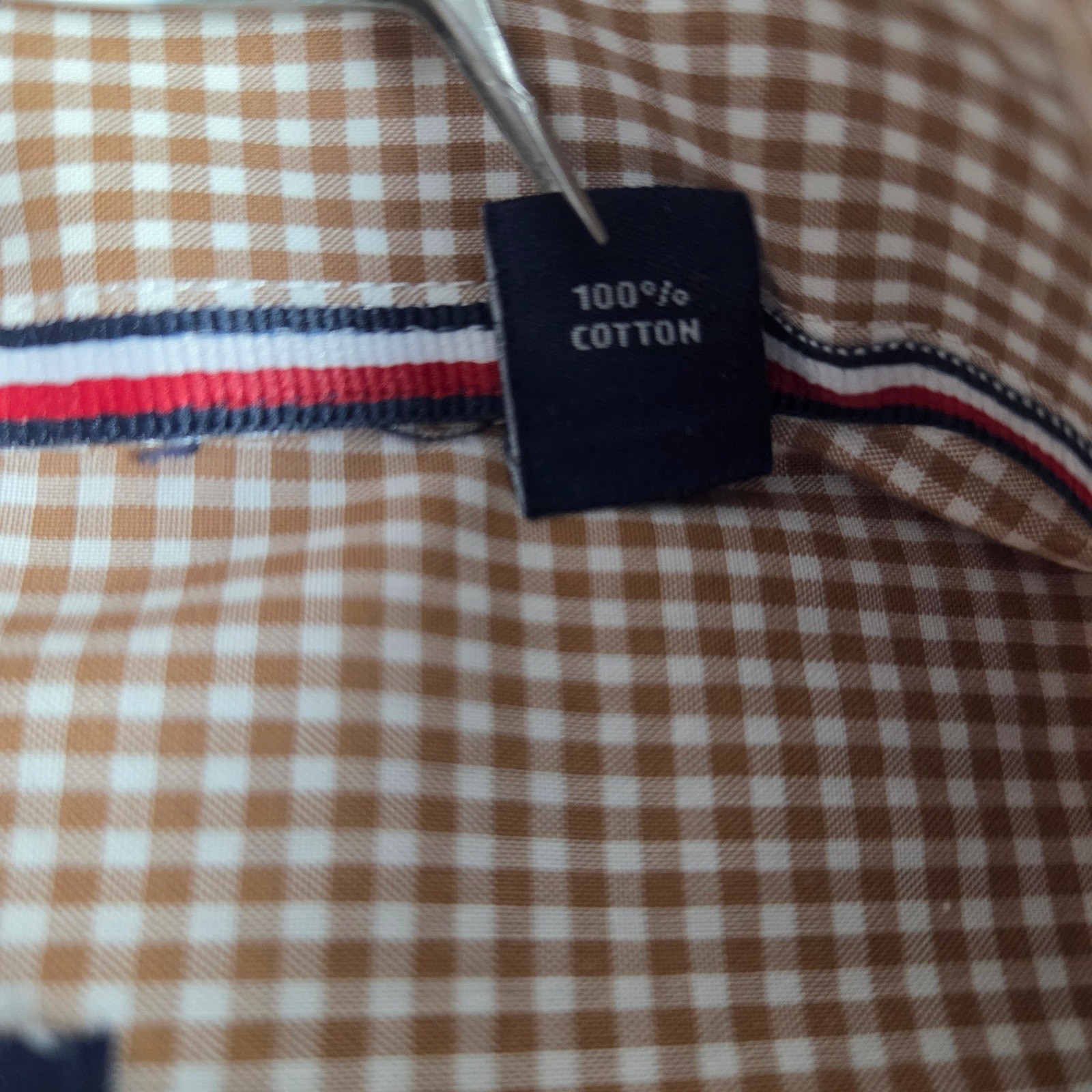 как выглядит Tommy Hilfiger Shirt Mens Size 17 34/35 Regular Fit Non Iron Brown Gingham фото