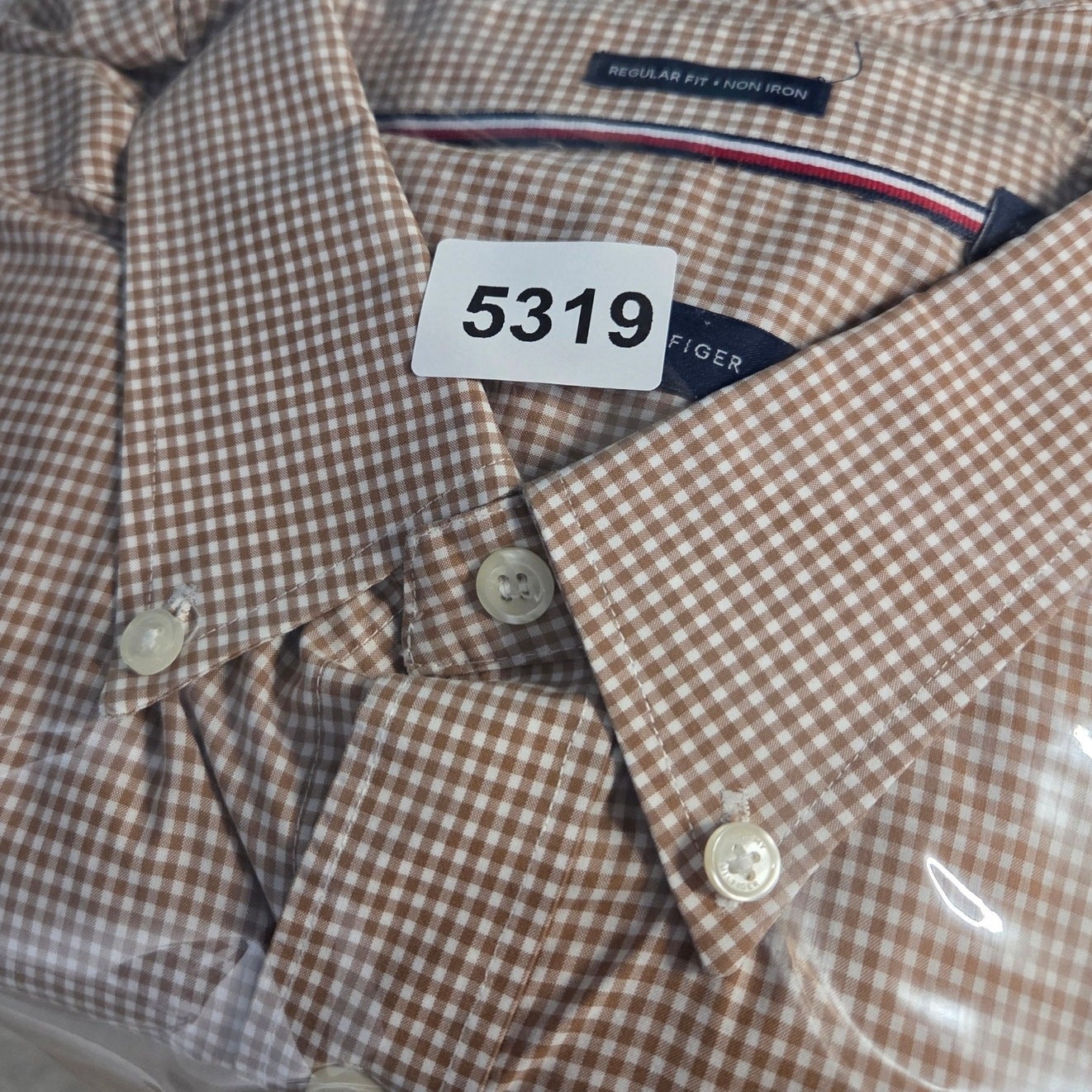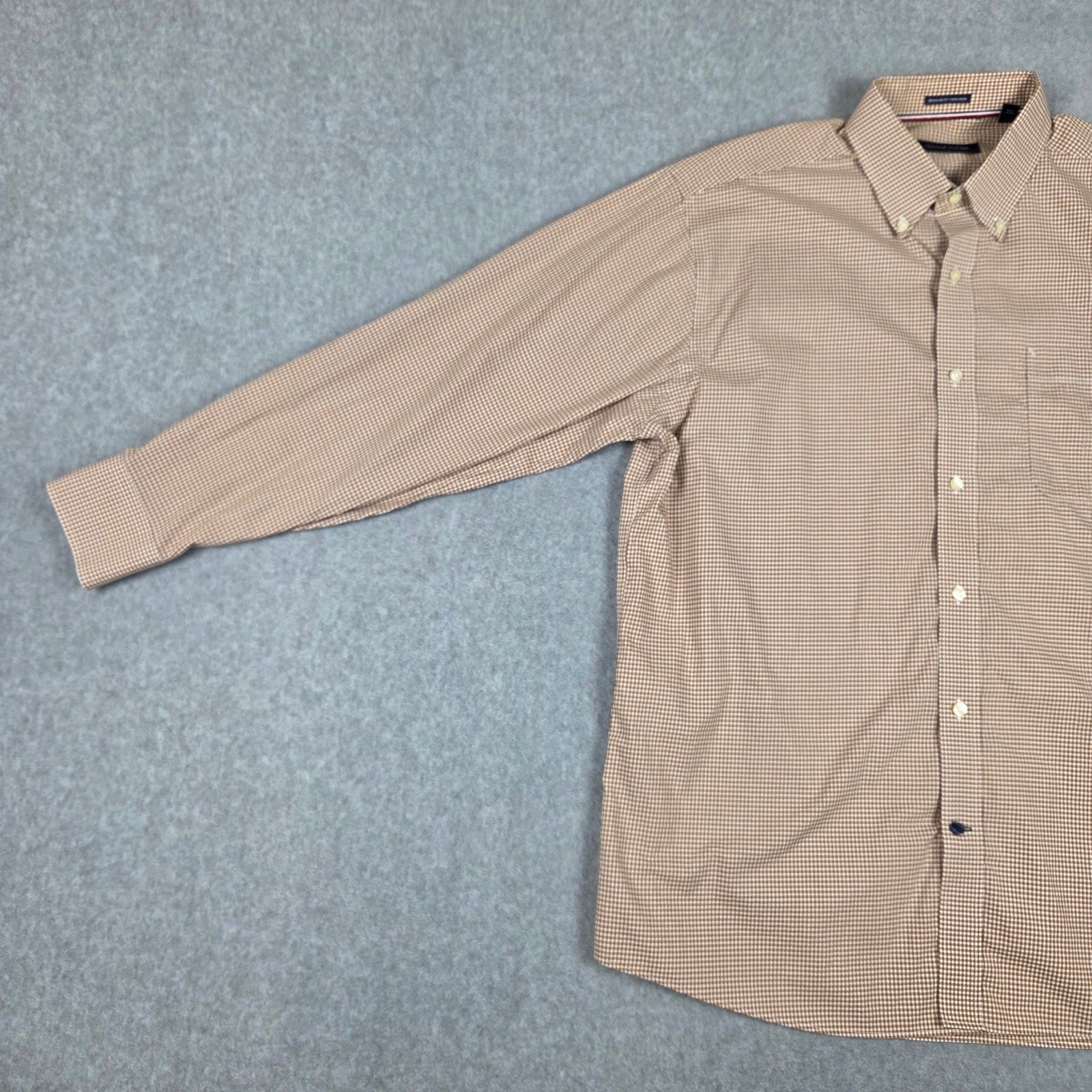 Tommy Hilfiger Shirt Mens Size 17 34/35 Regular Fit Non Iron Brown Gingham