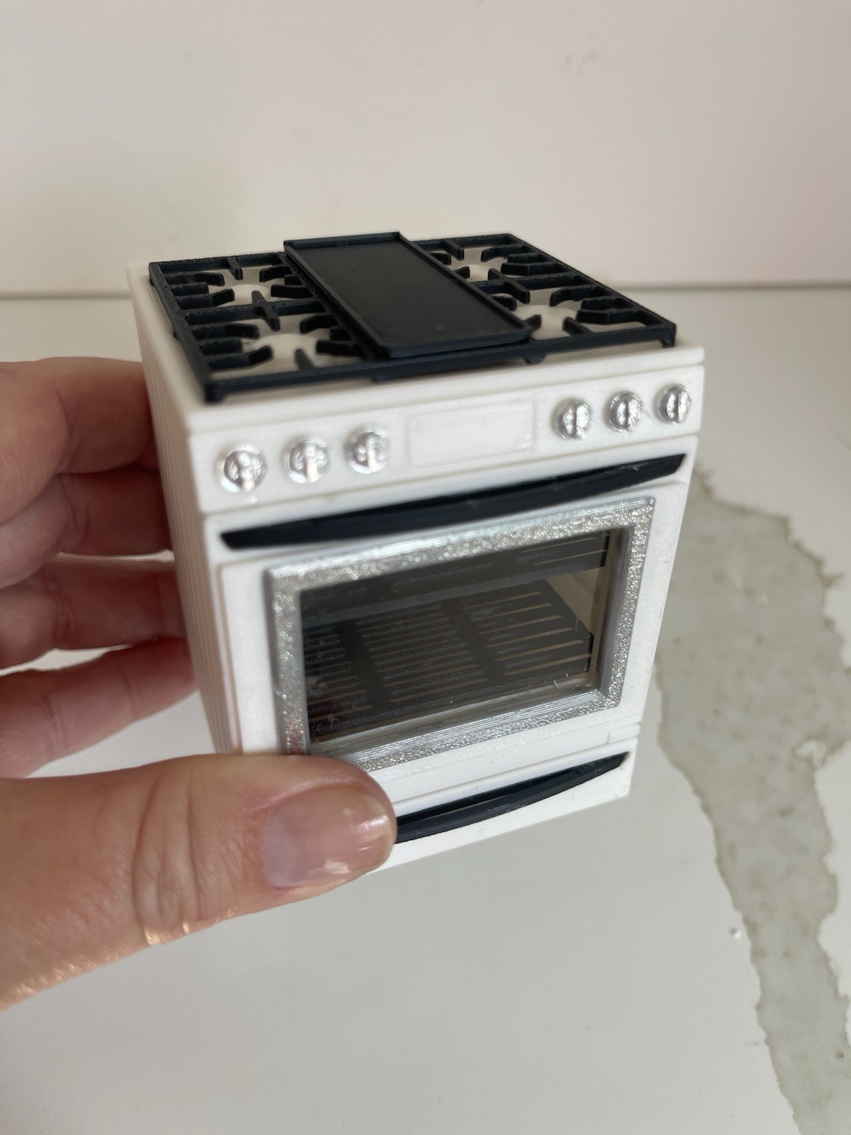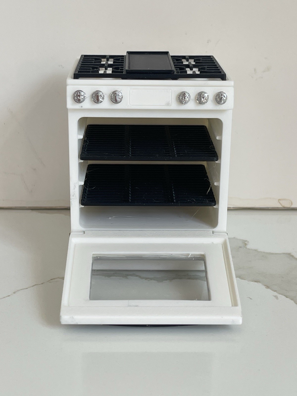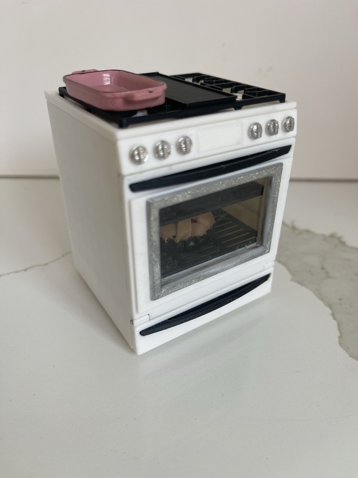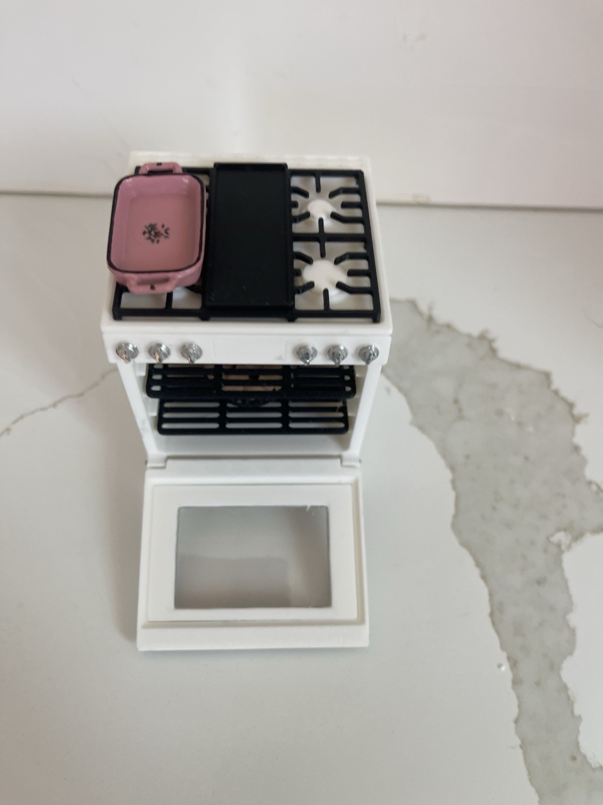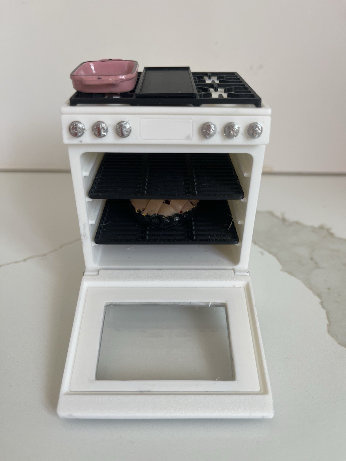 как выглядит Miniature Dollhouse White Stove/Oven with Opening Door, Pink Pan and Pie фото