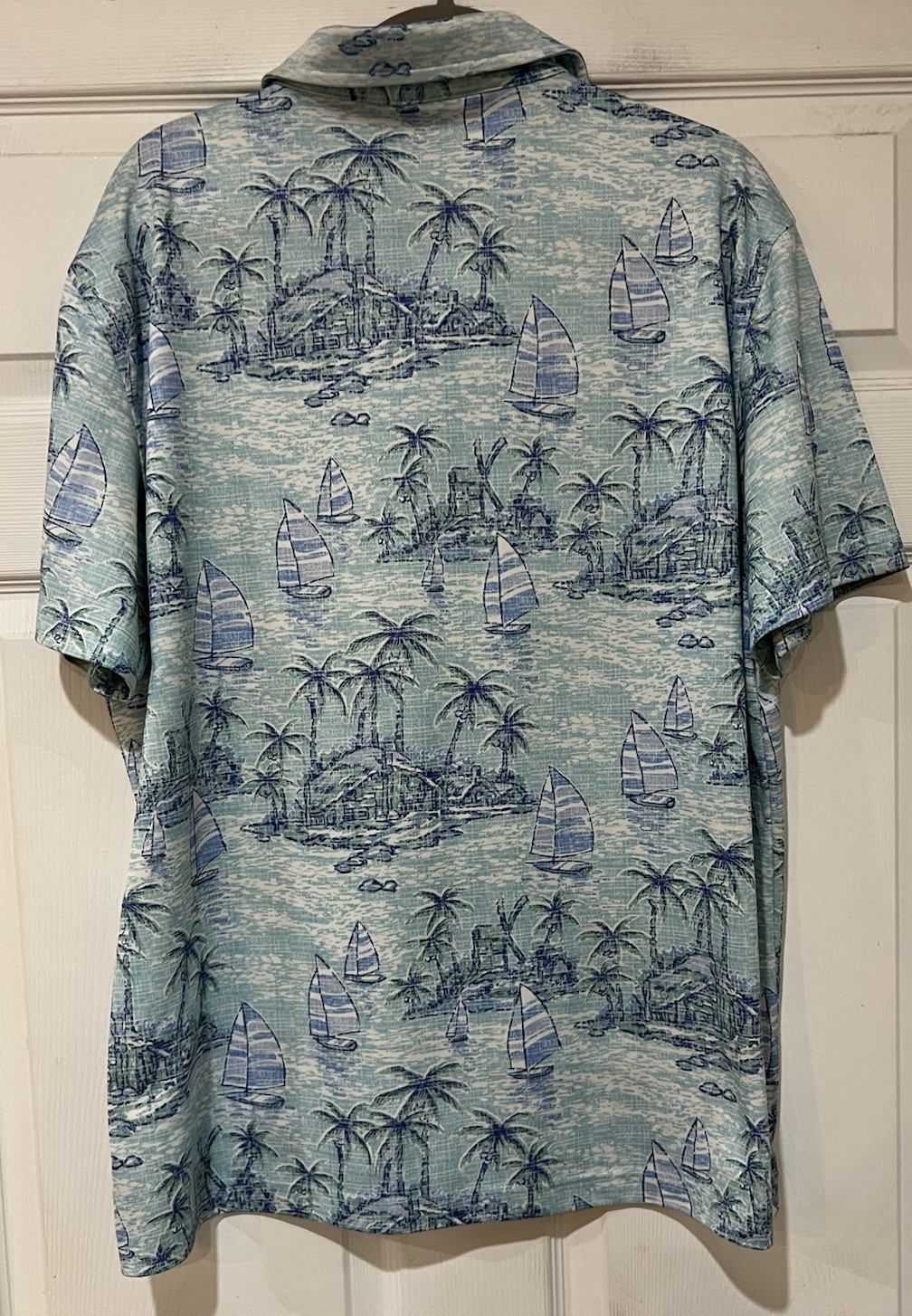 как выглядит Izod Relaxed Fit Classic Sz XL Saltwater Palm Print Beach Polo Shirt Pocket EUC фото