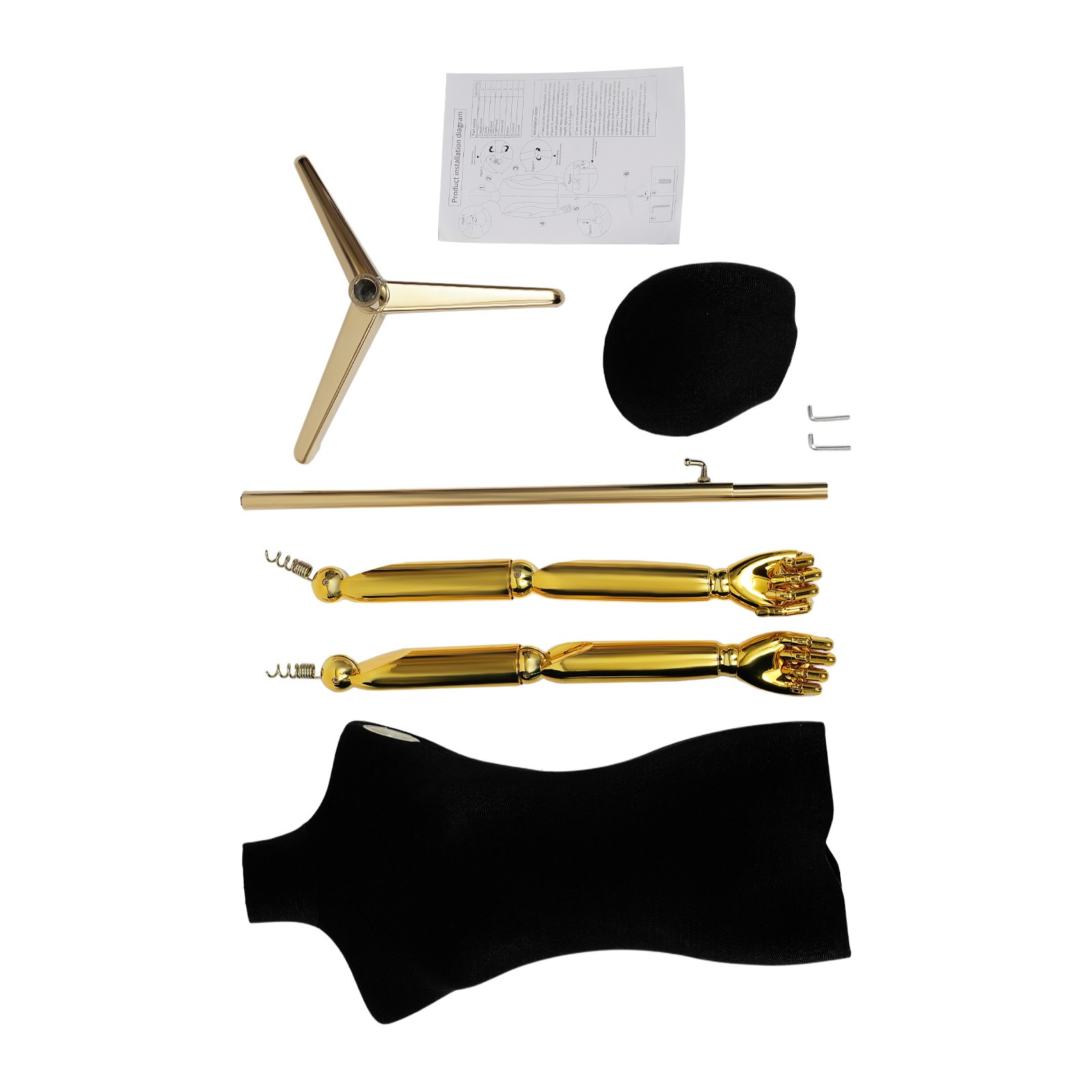 как выглядит Black Velvet Female Dress Form Mannequin W/ Gold Arm Tripod for Clothing Display фото