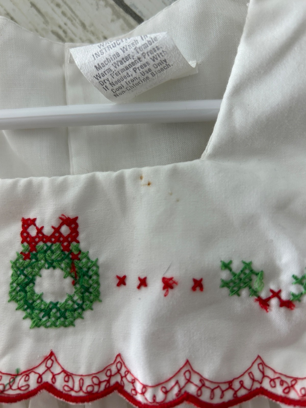 Vintage Smocked White Baby Dress 18 months With Wreath and Holly