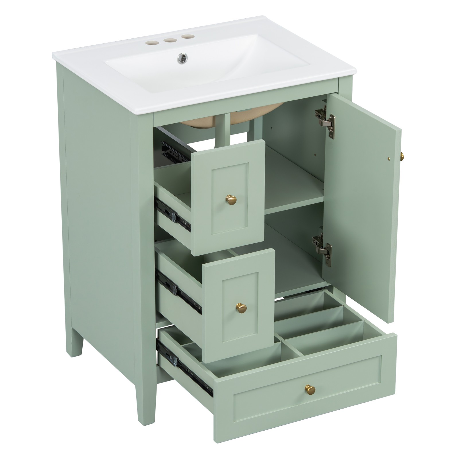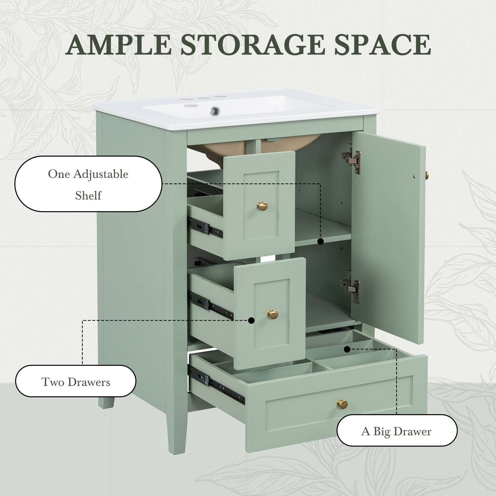 24 Bathroom Vanity with Ceramic Sink,Freestanding Storage Cabinet w/Drawers