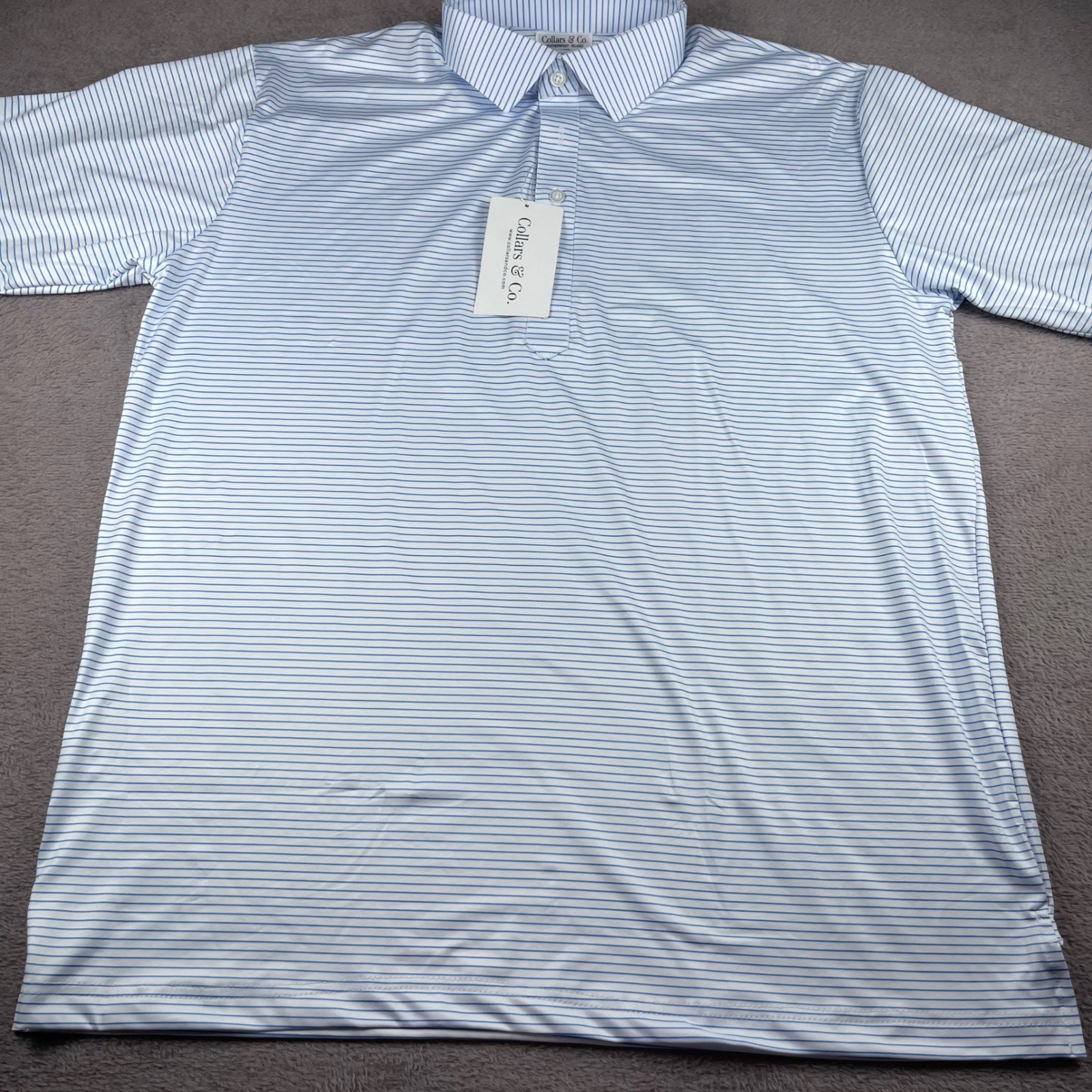 как выглядит Collars Co Featherweight Relaxed Polo Shirt Mens Large Blue White Stripe FLAWS фото