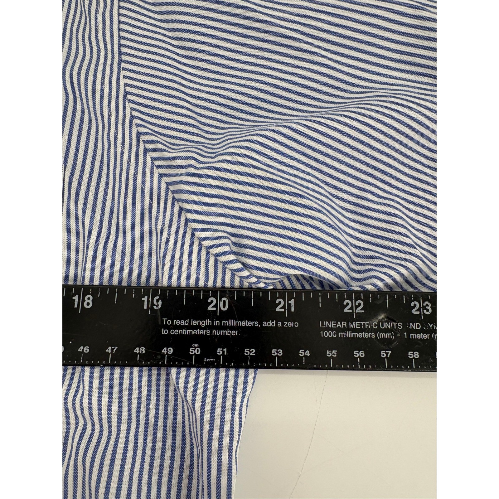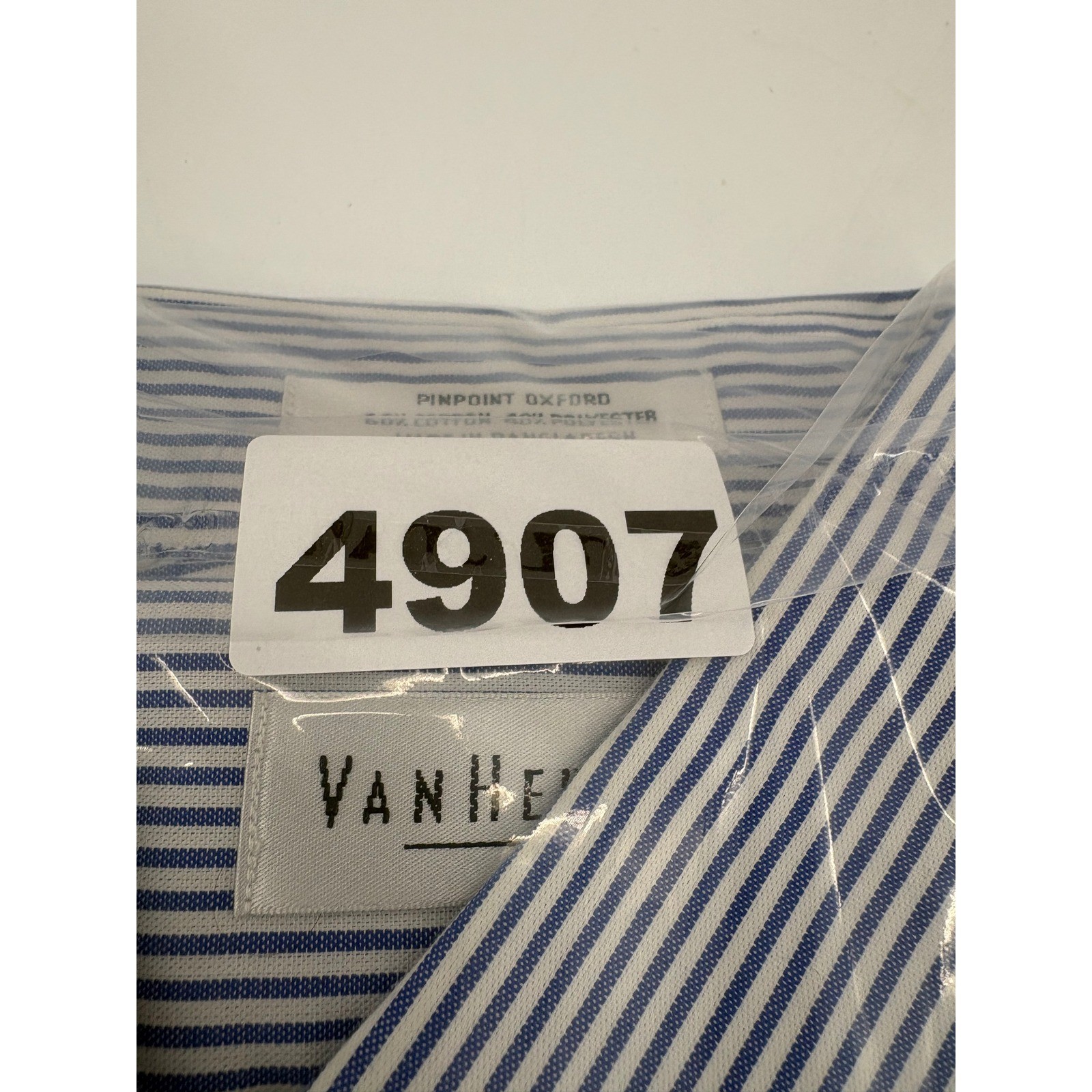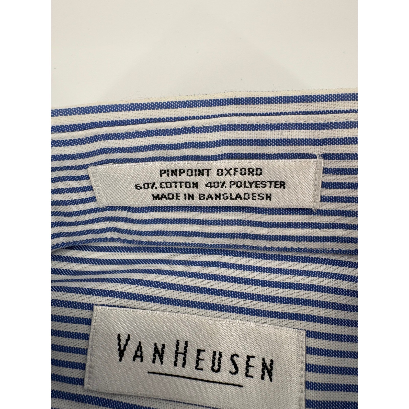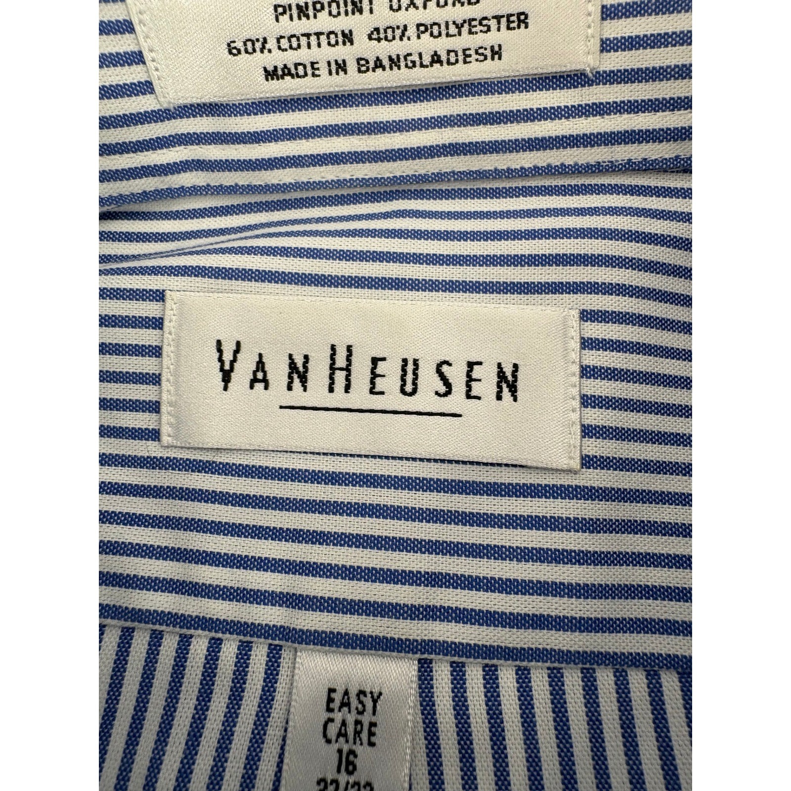 как выглядит Van Heusen Mens Blue White Stripe Pinpoint Oxford Easy Care Dress Shirt Large фото