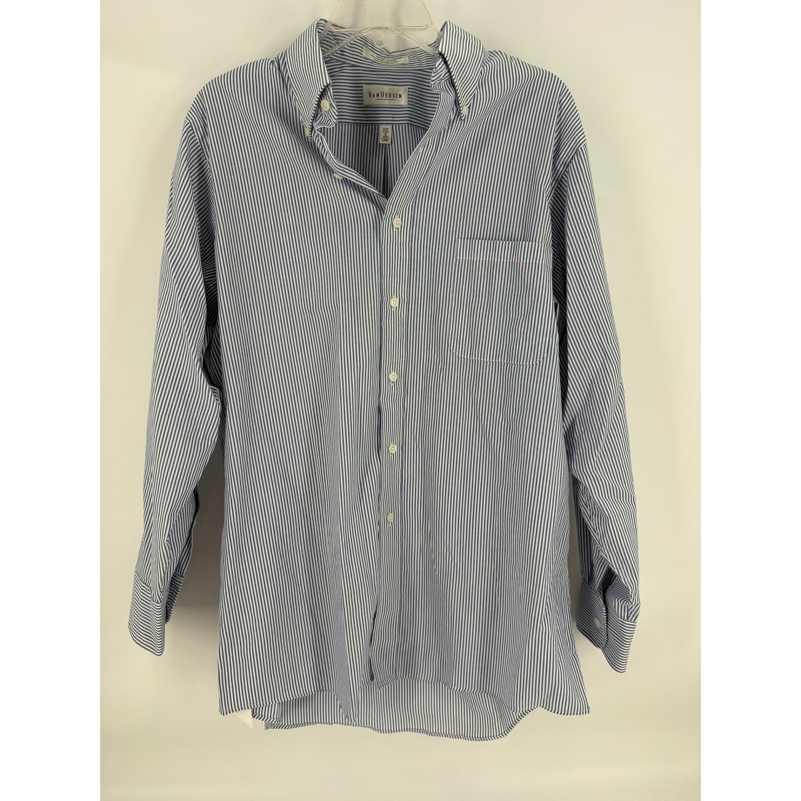 Van Heusen Men's Blue White Stripe Pinpoint Oxford Easy Care Dress Shirt Large