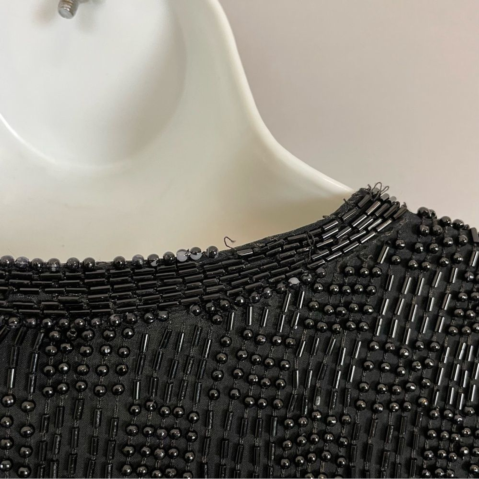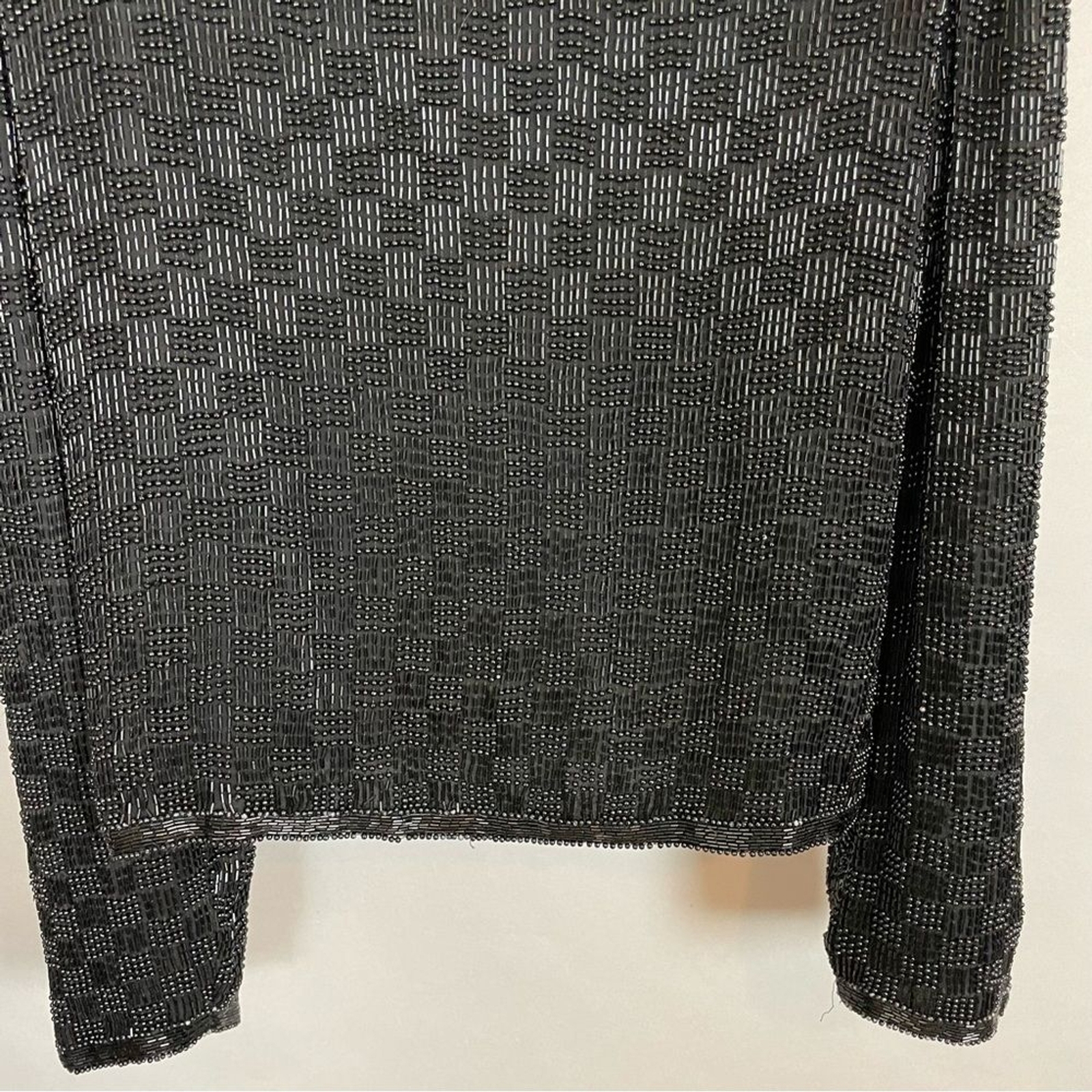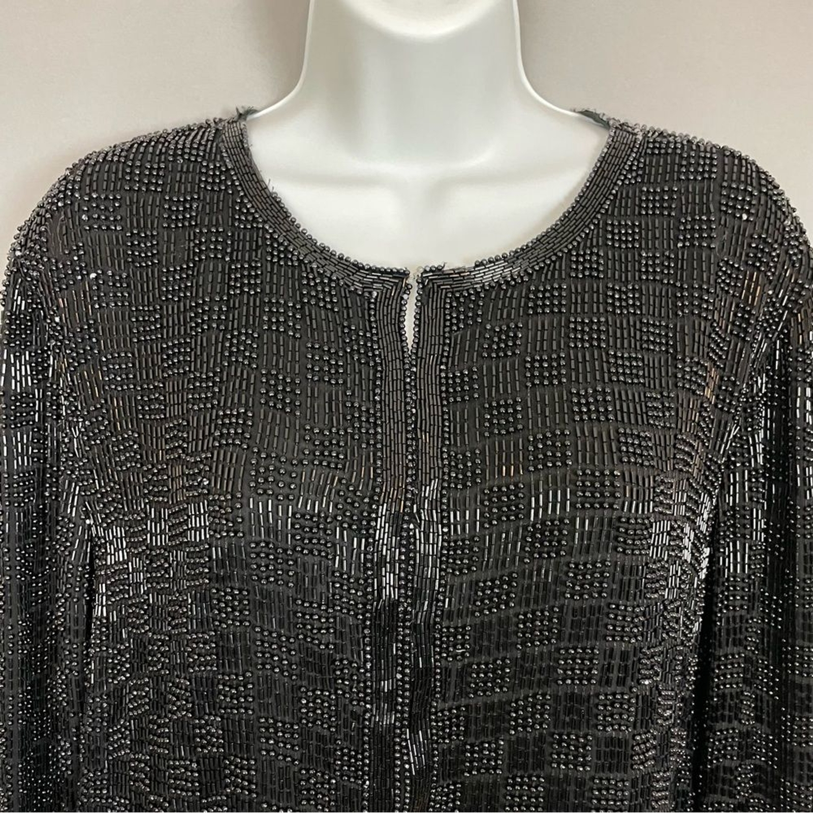 как выглядит Vintage Scala Silk Beaded Jacket Formal Black Long Sleeves Large Flaws Black Tie фото