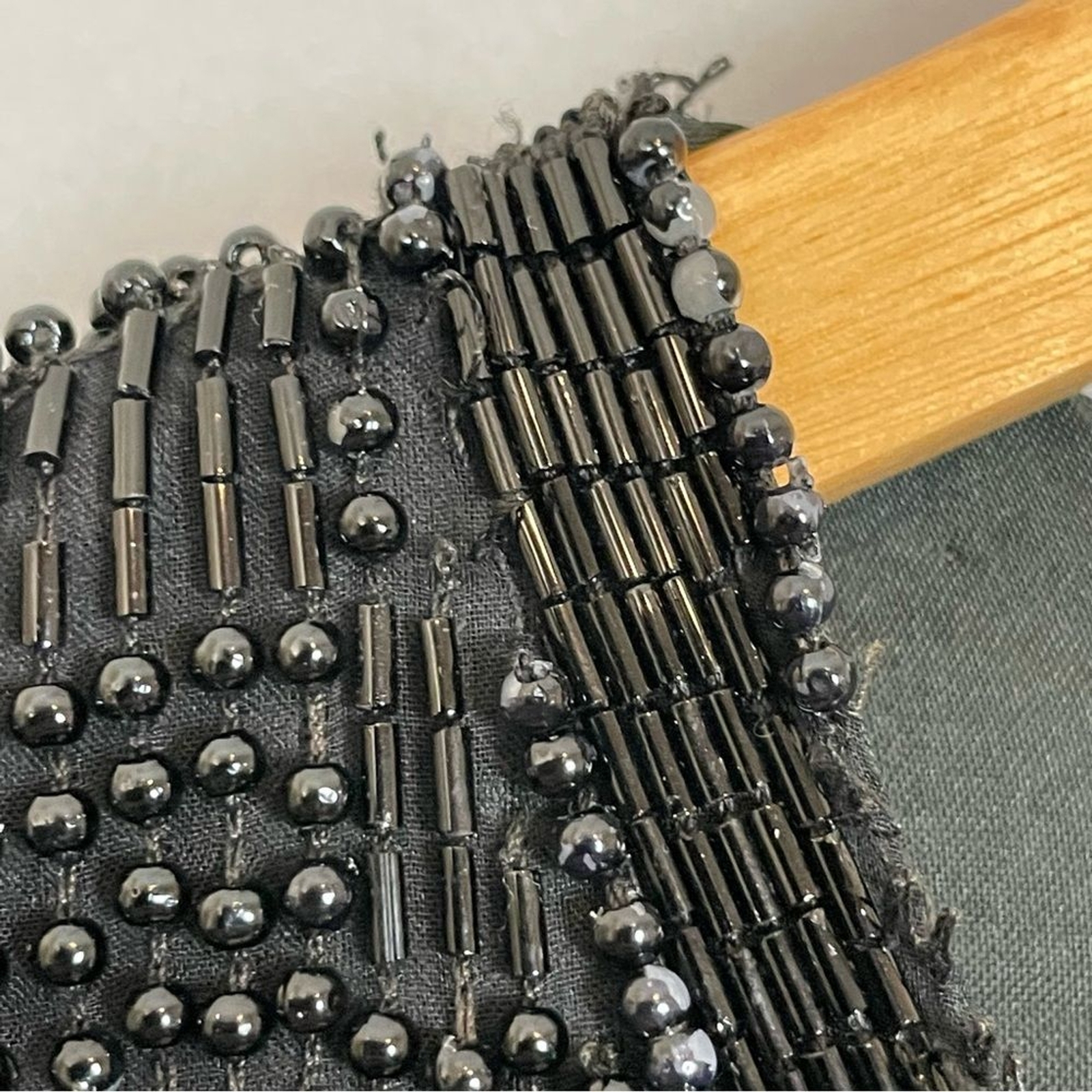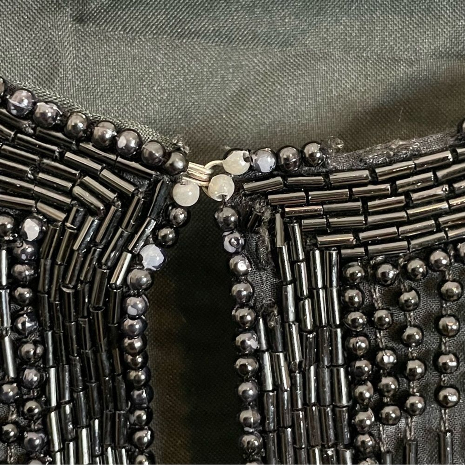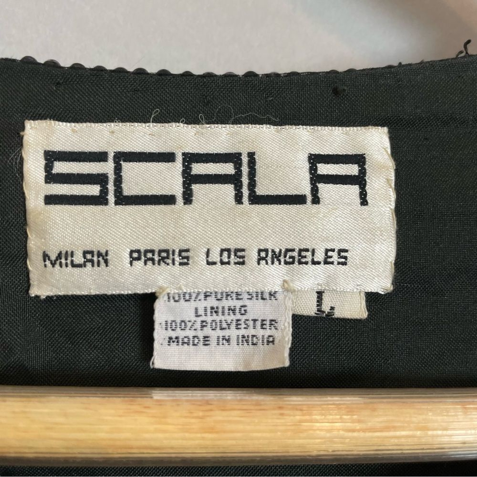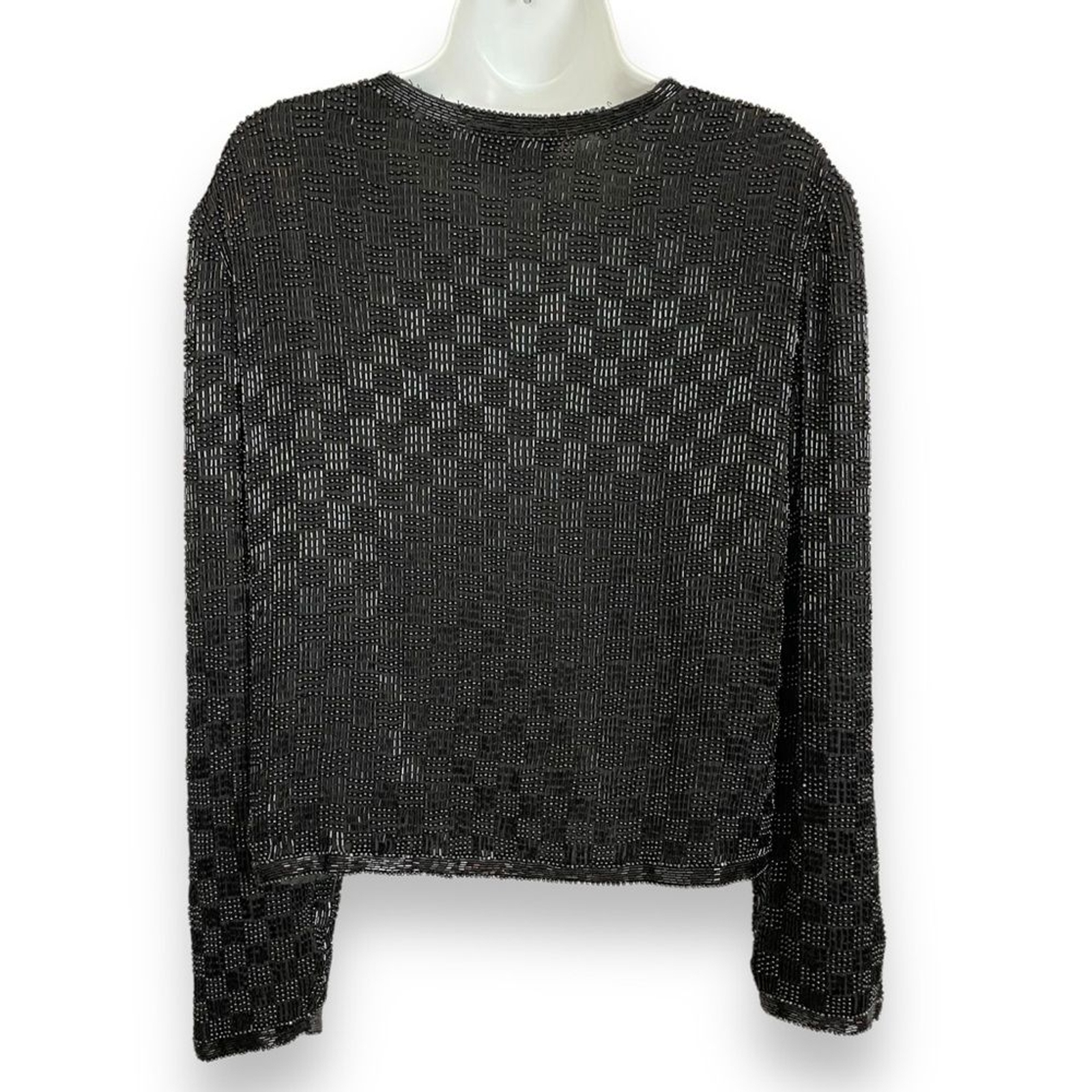 как выглядит Vintage Scala Silk Beaded Jacket Formal Black Long Sleeves Large Flaws Black Tie фото