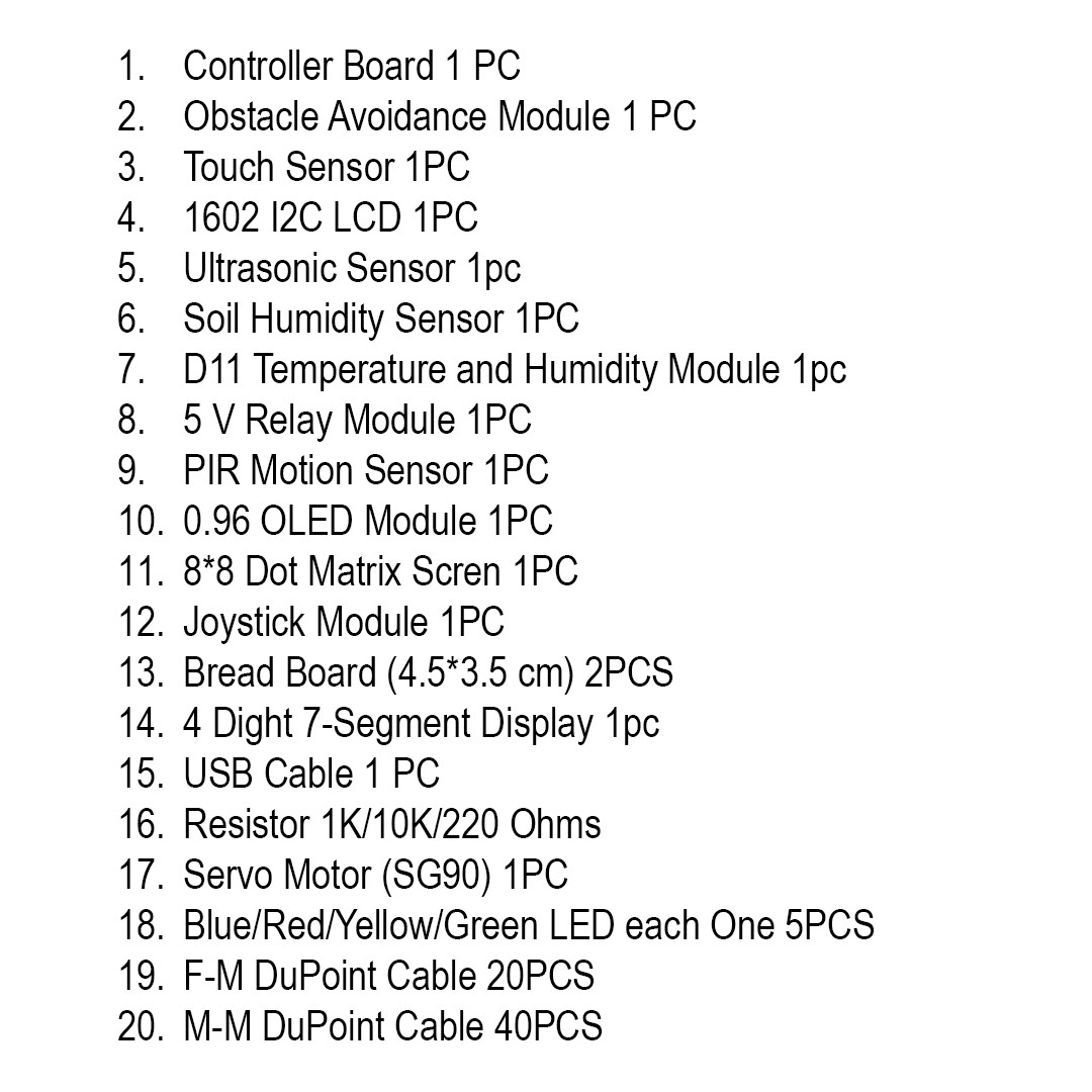 Arduino UNO R3 Complete Sensor Module Starter Kit with 50 Lessons Pack