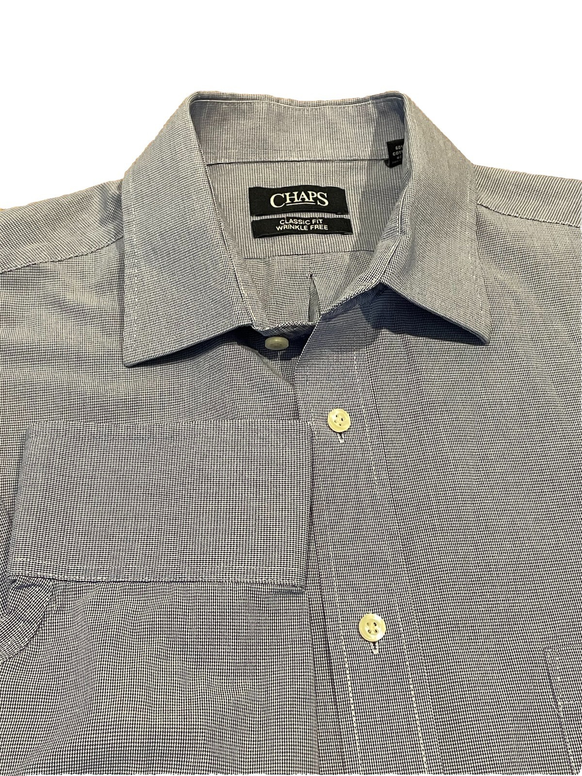 CHAPS Mens 16.5 Blue CHECKERED Shirt Long Sleeve Button Classic Fit WRINKLE FREE